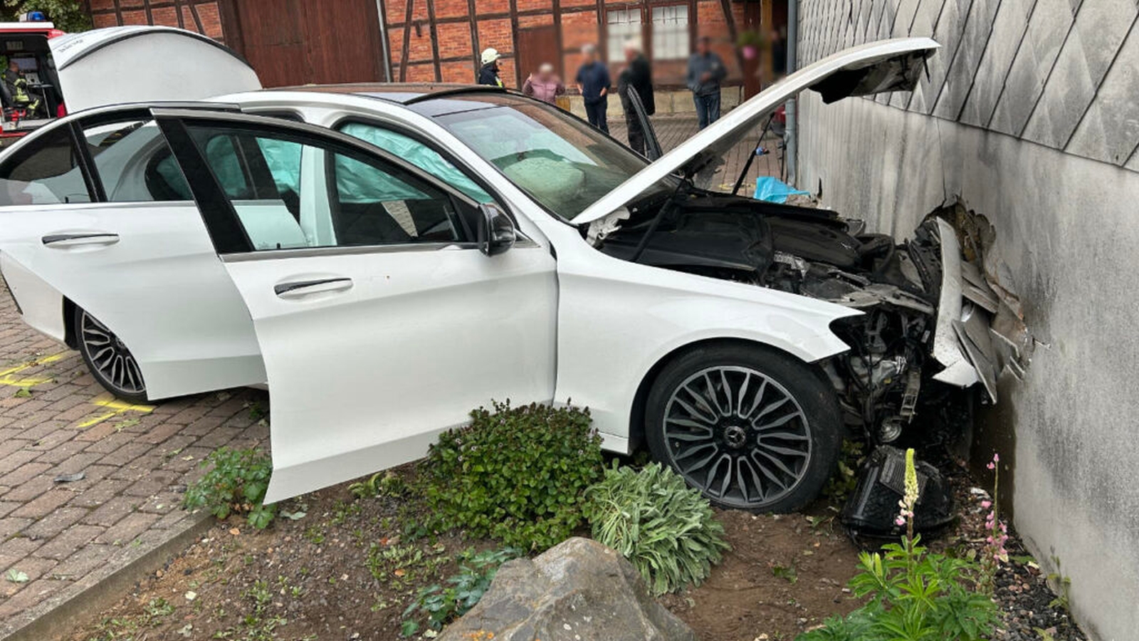 Im Wagen befanden sich vier Personen. Der Fahrer blieb unverletzt, drei Mitfahrende erlitten leichte Verletzungen und wurden vor Ort medizinisch versorgt. Am Fahrzeug sowie an dem Wohnhaus entstand erheblicher Sachschaden, der nach ersten Schätzungen im sechsstelligen Bereich liegt.