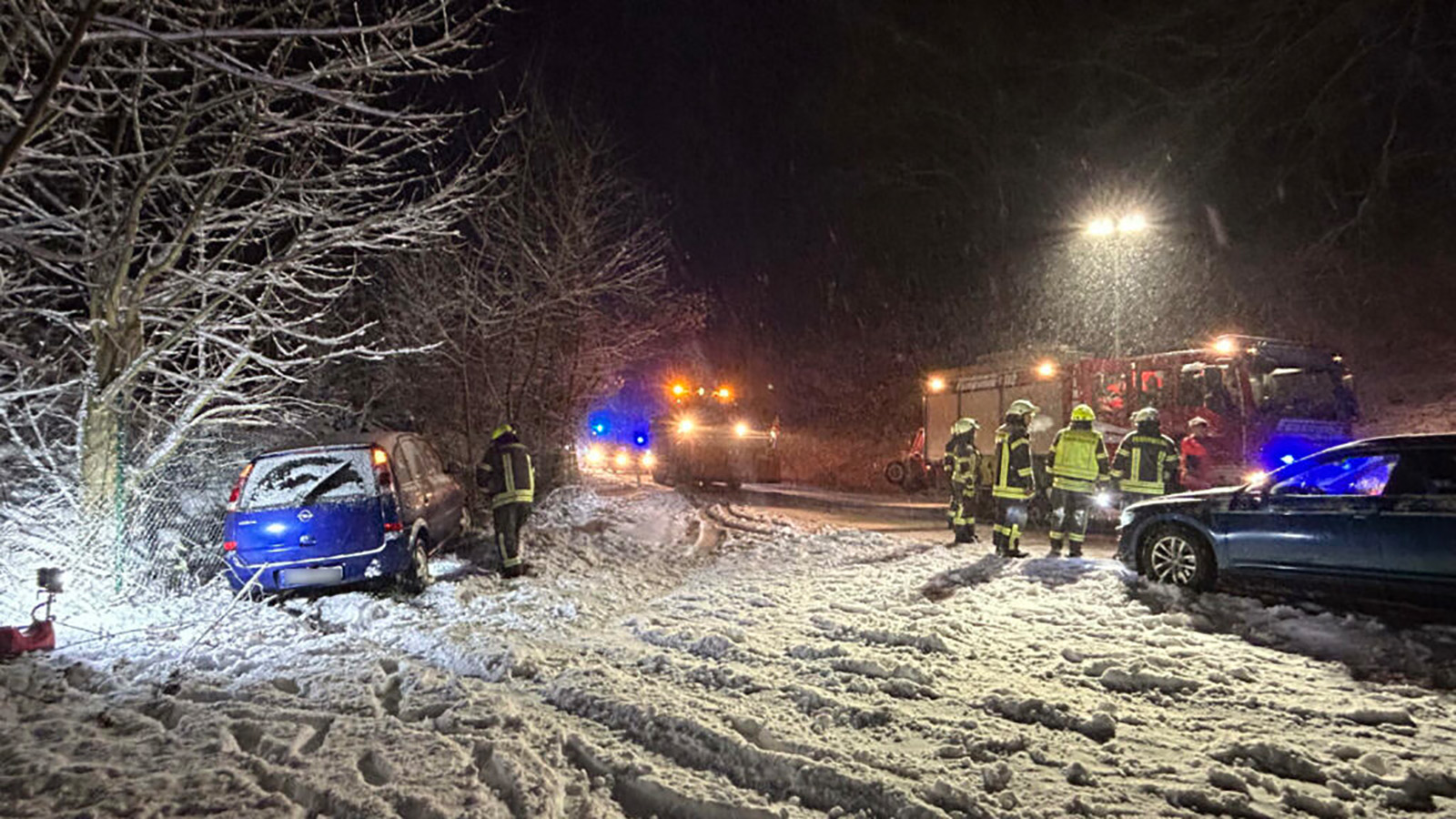 Die Feuerwehr zog das Fahrzeug mittels Winde aus Zaun und Mauer und schaltete es anschließend stromlos. Gleichzeitig wurde die Unfallstelle ausgeleuchtet. Die L484 blieb während der Rettungs- und Bergungsarbeiten voll gesperrt.
