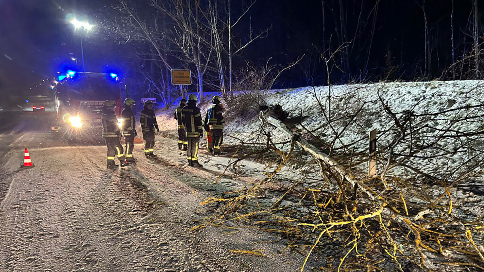 Nur zwei Stunden später, um 21.41 Uhr, erfolgte die nächste Alarmierung: Am Ortsausgang von Eschershausen in Richtung Wickensen war ein Baum auf die B64 gestürzt. Die Einsatzkräfte sicherten die Gefahrenstelle ab, leuchteten sie aus und entfernten den Baum mit einer Motorsäge.