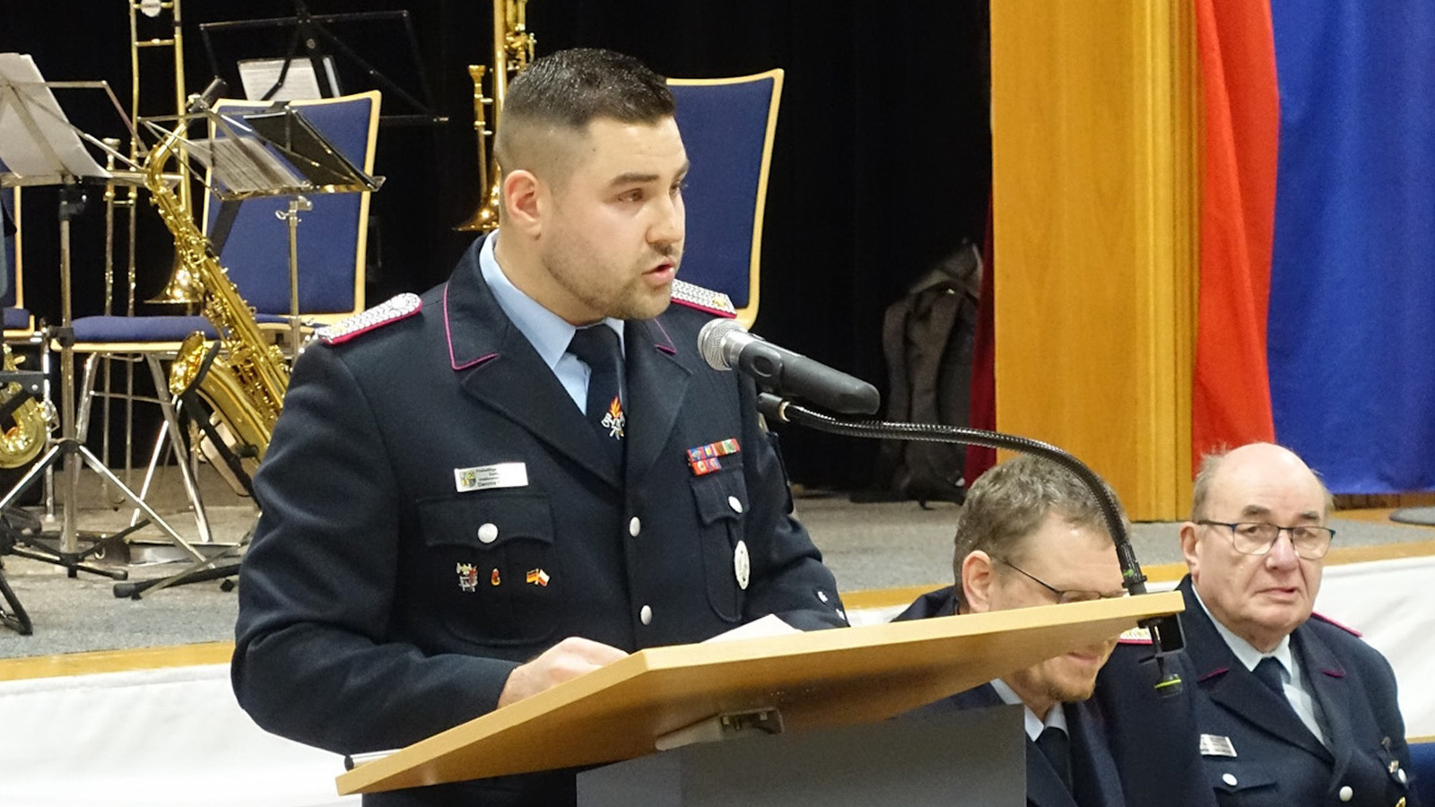 Über die Arbeit des Musikzuges berichtete Lukas Strohte. Der Musikzug zählt aktuell 29 aktive Musikerinnen und Musiker und absolvierte im Jahr 2025 insgesamt 22 Auftritte.