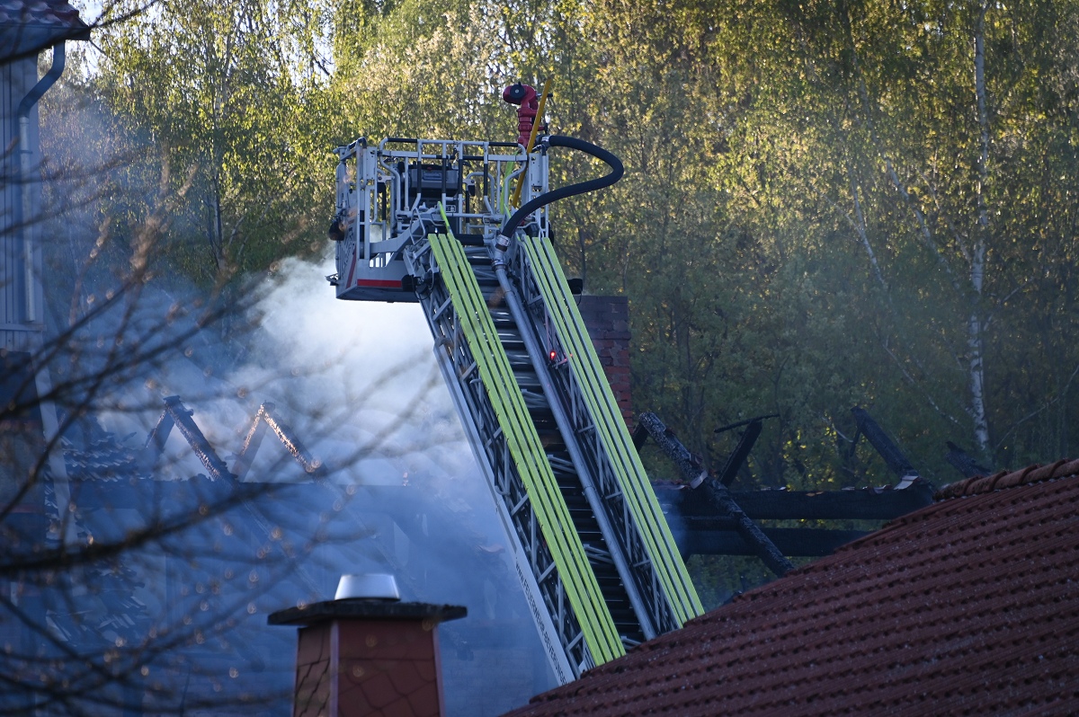 Nach bisherigen Angaben brach das Feuer im Bereich eines Anbaus aus und breitete sich rasch aus. Eine Zeugin hatte gegen 16 Uhr Rauch bemerkt und die Einsatzkräfte alarmiert. Beim Eintreffen von Feuerwehr und Polizei stand der Dachstuhl bereits in Flammen, gegen 17 Uhr war er vollständig ausgebrannt.