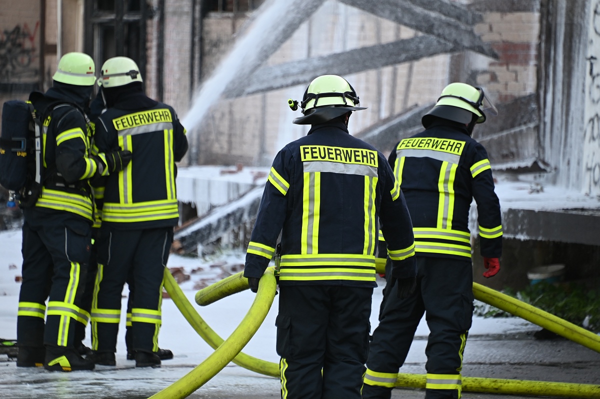 Das betroffene Lagergebäude brannte vollständig aus. Ein Innenangriff war aus Sicherheitsgründen nicht mehr möglich, sodass die Feuerwehr von außen löschte und auch Schaum einsetzte.