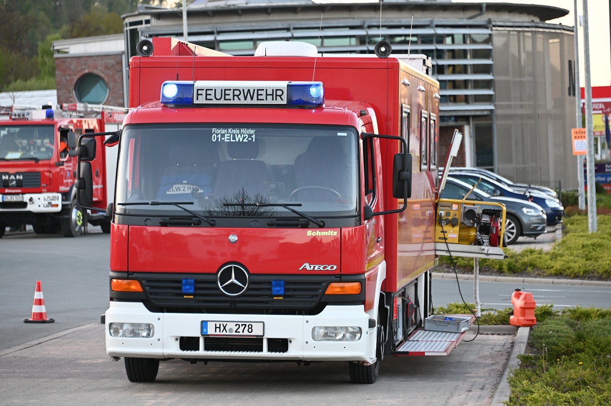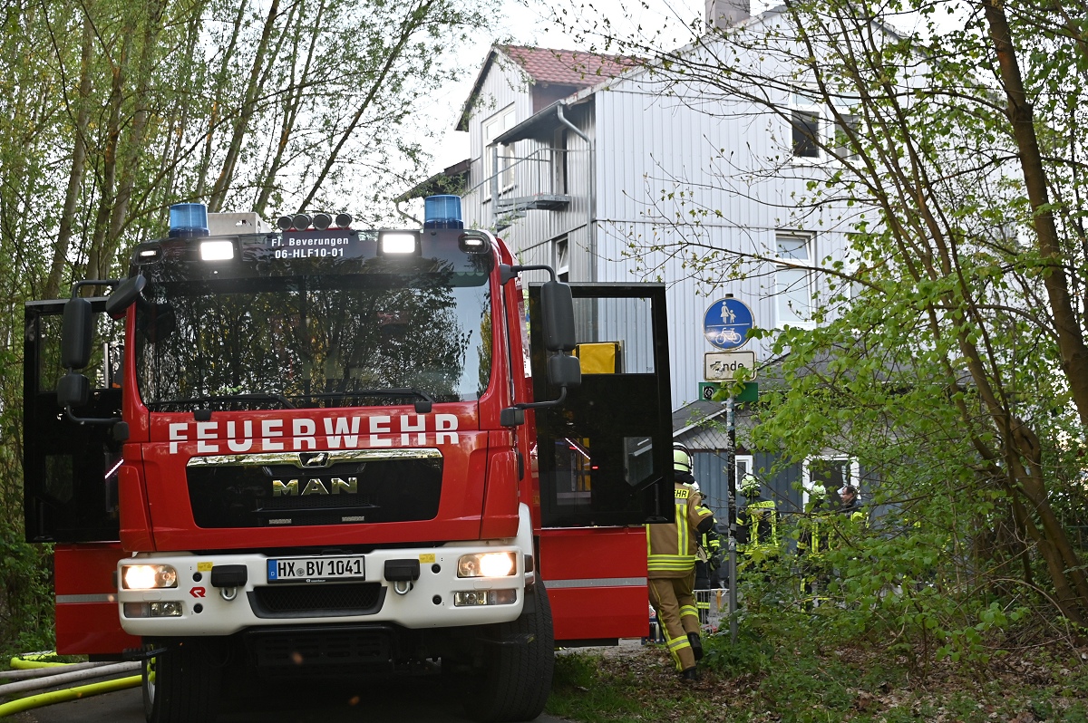 Rund 120 Einsatzkräfte waren zeitweise vor Ort. Neben umfangreichen Löschmaßnahmen kam auch eine Drohne der Kreisfeuerwehr Höxter zum Einsatz.