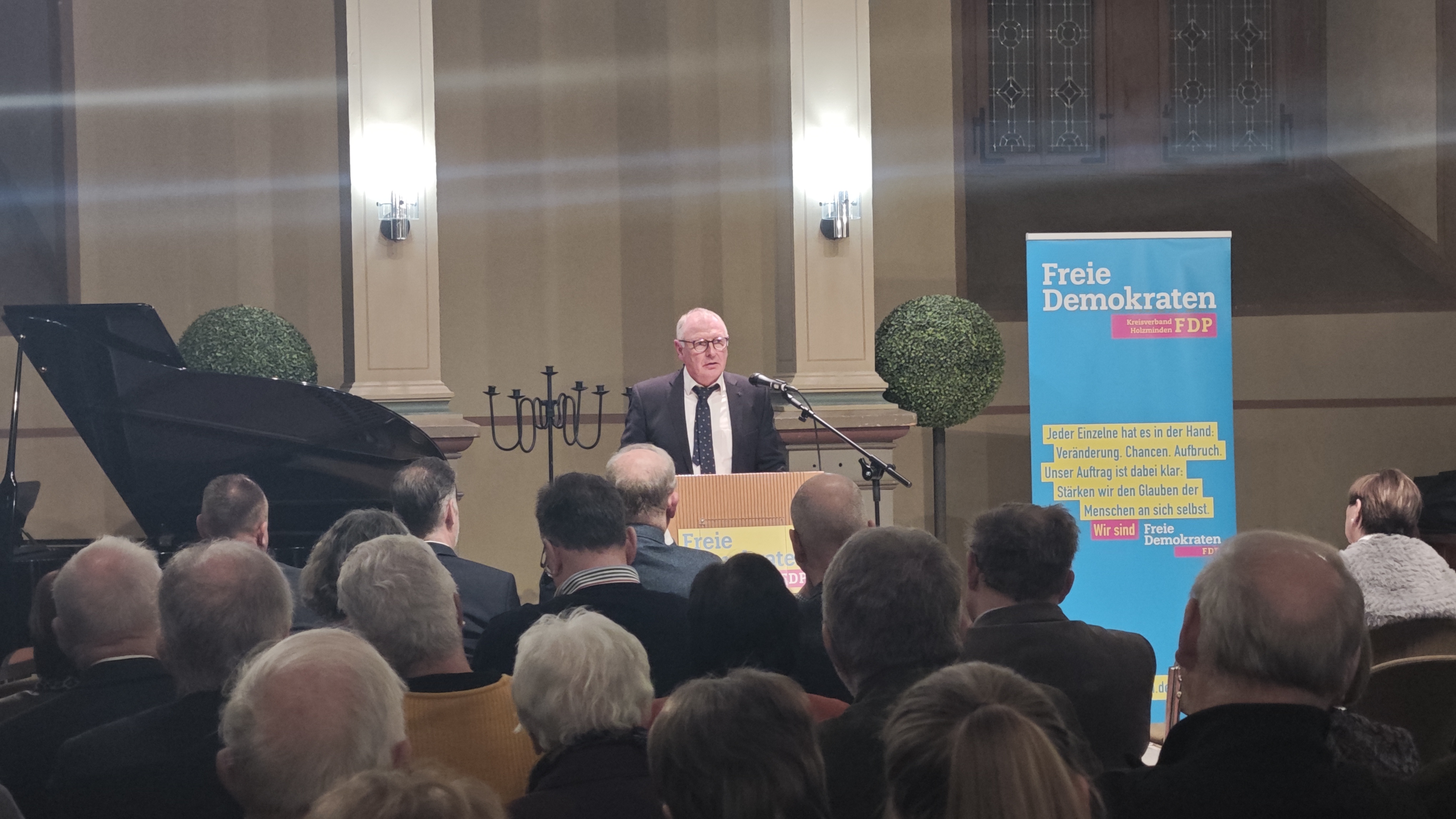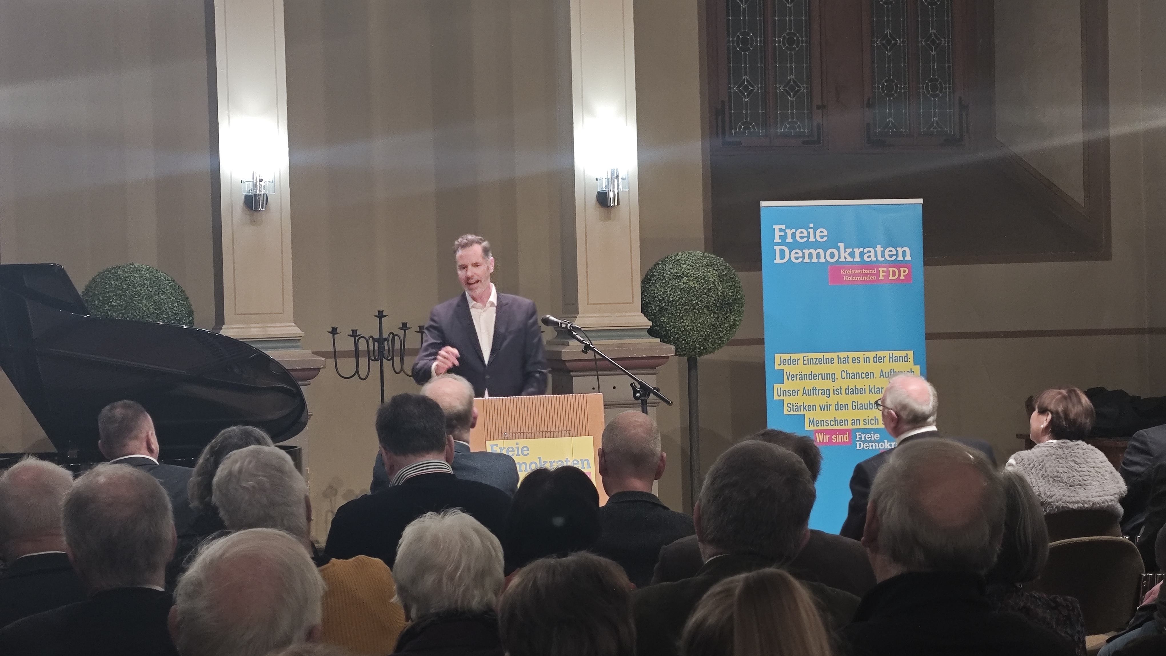Bevern (zir). In der Schlosskapelle Bevern hat die FDP am 14. Januar ihren Neujahrsempfang veranstaltet. Begleitet von Klaviermusik kamen Vertreter aus Politik und Verwaltung zusammen. Im Mittelpunkt des Abends stand der Bundesvorsitzende der FDP, Christian Dürr, der als Stargast der Veranstaltung zentrale politische Themen ausführlich beleuchtete. Daneben ging es um Bildung, die angespannte Finanzlage der Kommunen sowie die zukünftige Ausrichtung der FDP.