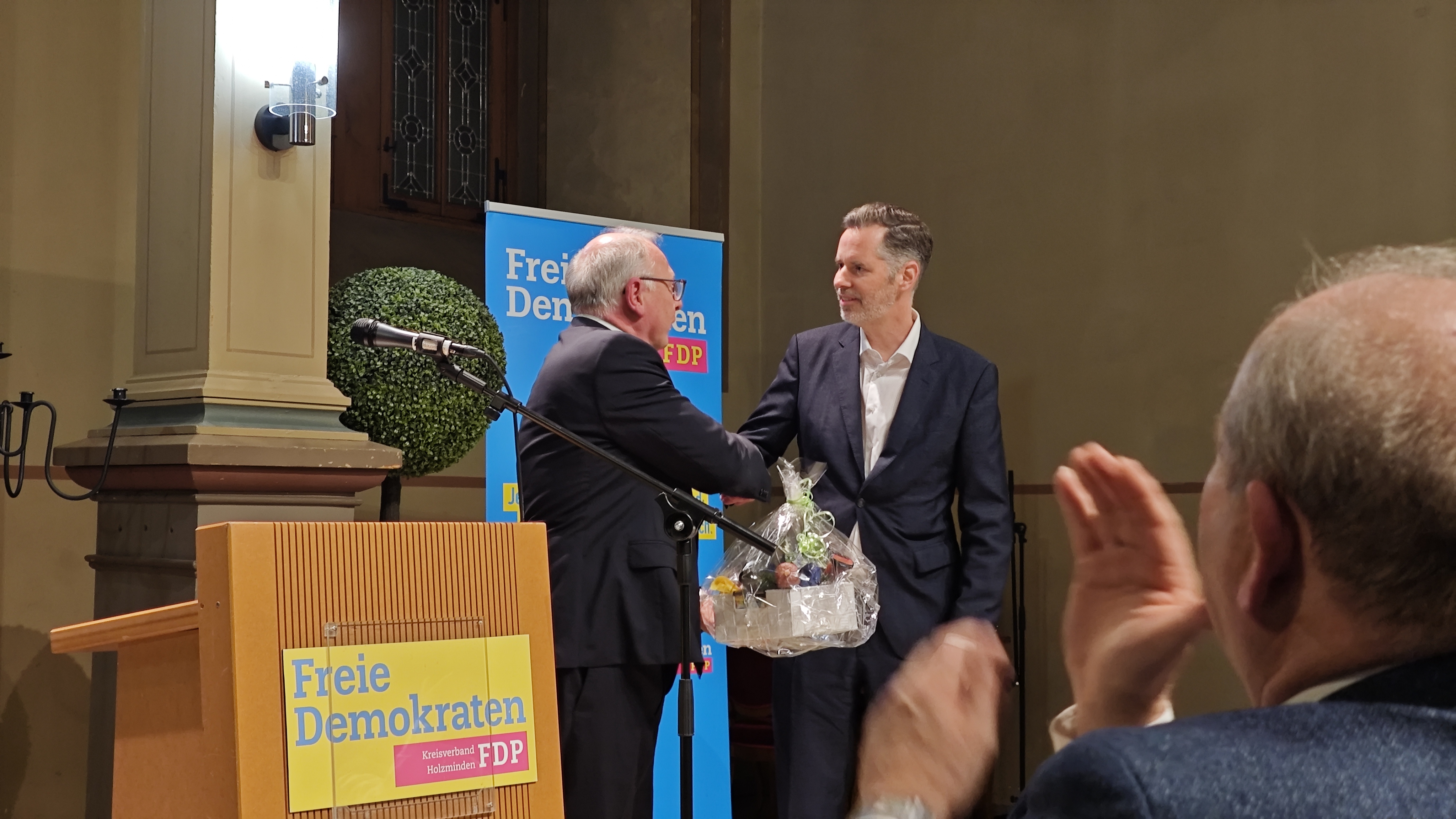 Gegen Ende der Veranstaltung ergriff auch Beverns Bürgermeister Burkhard Dörrier das Wort. Sichtlich bewegt zeigte er sich von den Ausführungen Christian Dürrs und sprach von einem „Kloß im Hals“ nach dessen Rede. Dörrier räumte ein, dass politisch nicht immer die richtigen Entscheidungen getroffen worden seien, betonte jedoch, dass aus Fehlern gelernt werden müsse. Wichtig sei es, trotz aller Herausforderungen optimistisch in die Zukunft zu blicken. Bund und Land würden davon profitieren, wenn die FDP wieder in die Parlamente einziehe. Mit Blick auf die angespannte Finanzlage der Kommunen – insgesamt mehr als 55 Milliarden Euro Schulden – machte er deutlich, wie schwer es sei, den Bürgerinnen und Bürgern Perspektiven zu geben, wenn Zusagen finanziell kaum einzuhalten seien. Auch in der Bildungspolitik äußerte Dörrier deutliche Kritik, etwa an der Abschaffung des schriftlichen Dividierens in Niedersachsen. Abschließend erinnerte er an einen zentralen Leitsatz der FDP: „Vorfahrt für die Vernunft“, und verband damit die Hoffnung, dass dieser Anspruch auch künftig handlungsleitend bleibe.