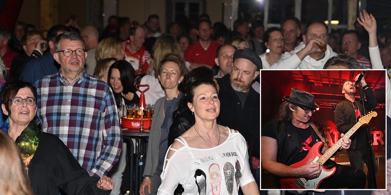 Ottbergen (TKu). „Alle für Kölle“ hieß es am Samstag im Ottberger KuStall während der großen Kölschen Nacht mit der Kölner Kult-Band „Räuber“ und DJ Marcus und Markus. 300 Konzertbesucher wollten sich den Auftritt der Räuber auf der zweiten Kölschen Nacht im Ottberger KuStall im Wiemersmeyerschen Hof nicht entgehen lassen. Die Räuber waren das erste Mal im Stadtgebiet Höxter zu Gast. „Die Stimmung war bombastisch“, meinte Arnd Mathias von der ausrichteten Kulturgemeinschaft Ottbergen. Dennoch war die Kölsche Nacht diesmal nicht ausverkauft, was laut DJ Markus Finger sehr wahrscheinlich an der Corona-Pandemie läge. 2019 hatte die Kulturgemeinschaft ihre erste Kölsche Nacht mit der Kölner Band Miljö ausgerichtet. Mit mehr als 600 Konzertbesuchern war die Veranstaltung damals ausverkauft, so wie die anderen Kölschen Nächte im Kreis Höxter ebenfalls. Bevor das Konzert in Ottbergen startete, waren einige Konzertkartengewinner vorab beim „Meet & Greet“ mit den Räubern. Kathrin Polzin sammelte dabei die Unterschriften der fünfköpfigen Band auf einer Kölnfahne. Die begehrten Unterschriften gaben die Bandmitglieder darüber hinaus aber nicht nur auf Autogrammkarten an ihre Fans weiter, sie unterschrieben Kathrin Polzin auch die weltweit einzige Gitarre mit Kölnwappen, auf der schon viele andere bekannte Kölner Bands wie die Paveier, Miljö oder Cat Ballou unterschrieben haben.