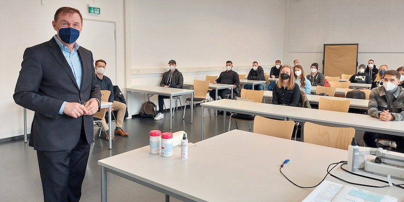 Holzminden (red). Herzlich begrüßte Dekan Prof. Dr. Matthias Weppler heute die Erstsemester des Studiengangs Baumanagement und Green Building. Die Veranstaltung in den Räumen der HAWK Hochschule für angewandte Wissenschaft und Kunst in Holzminden konnte erstmals wieder in Präsenz stattfinden. Spürbar ist die Freude darüber auch bei den neu eingeschriebenen Studierenden und die Hoffnung groß, dass das Sommersemester wie geplant in Präsenz stattfinden kann.