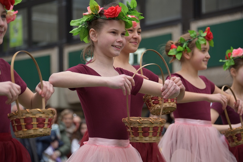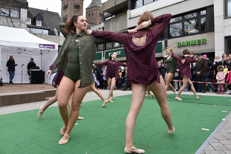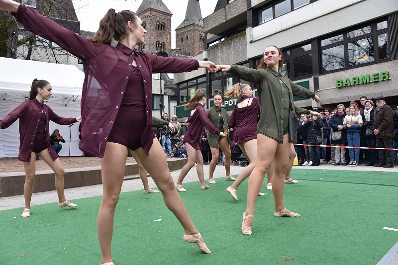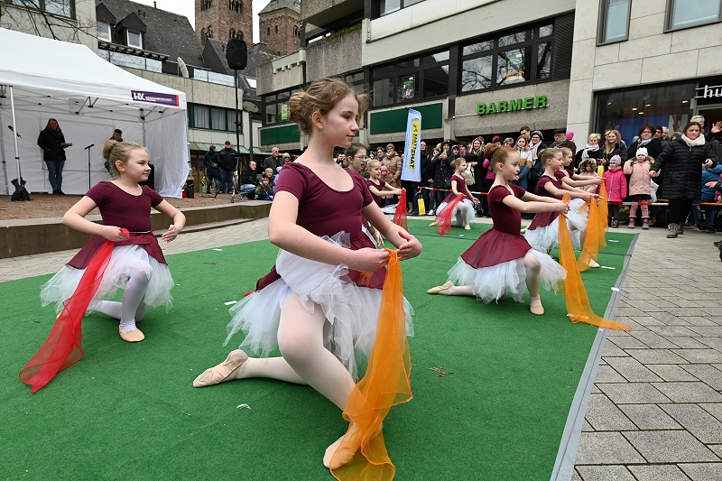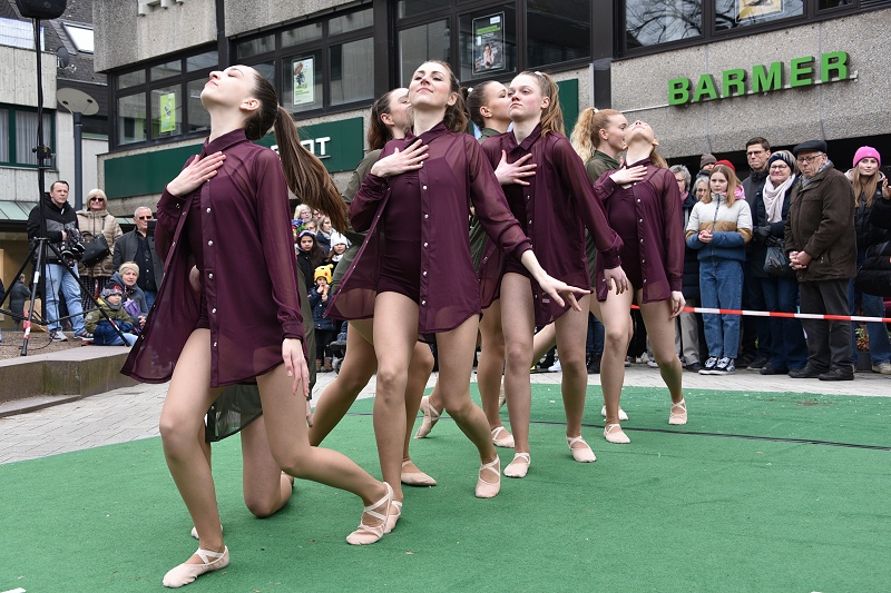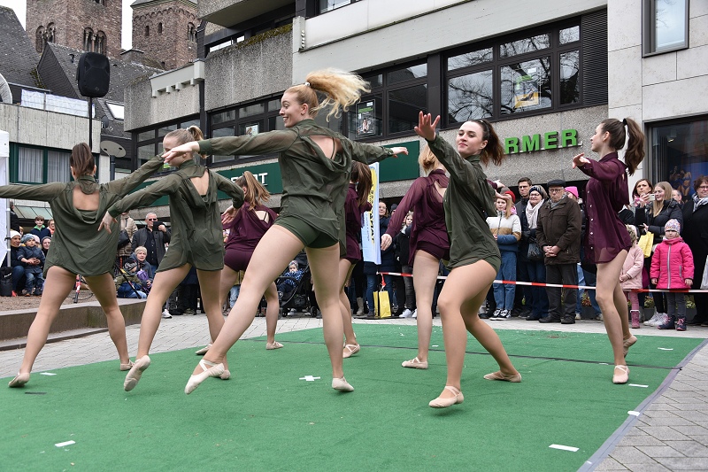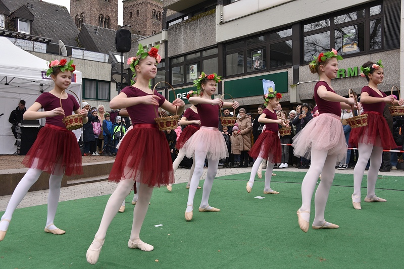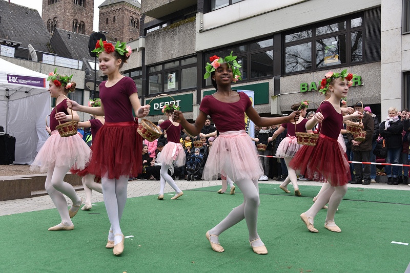 Höxter (TKu). Die Sonne mit Musik und Tanz herbeirufen zum Höxteraner Frühling am vergangenen Sonntag hat funktioniert. Ganz langsam ist der Frühling aus seinem Winterschlaf erwacht. In luftiger Kleidung und mit Blumen in den Kostümen haben die Tanzetage Höxter und der PetriGanztag den Höxteraner Frühling schon zu Beginn des „Höxteraner Frühlings“ eingeläutet. Zunächst war das Wetter grau und kalt, als die Musikschule auf der Marktplatzbühne spielte. Die Sonne kämpfte sich aber zum Nachmittag durch die Wolken hindurch und es wurde mit der Zeit etwas wärmer. Mit viel Programm, verkaufsoffenen Geschäften, Info- und Verkaufsständen sowie floralem Ambiente hat die Werbegemeinschaft Höxter wieder hunderte bis tausende Menschen in die Höxteraner Innenstadt gezogen.