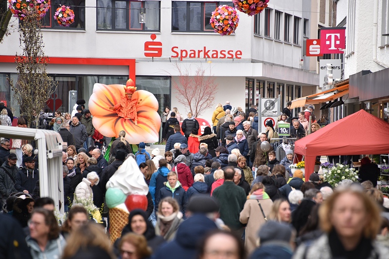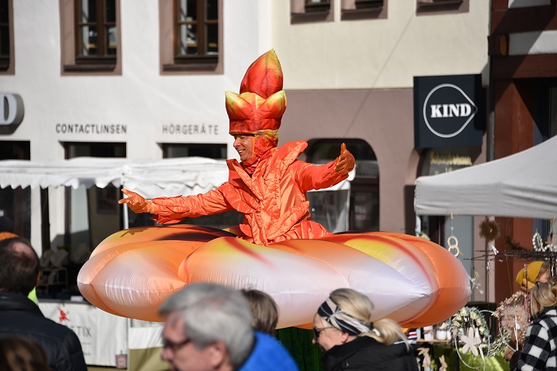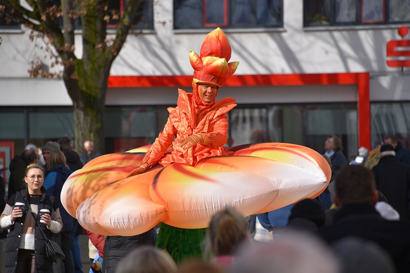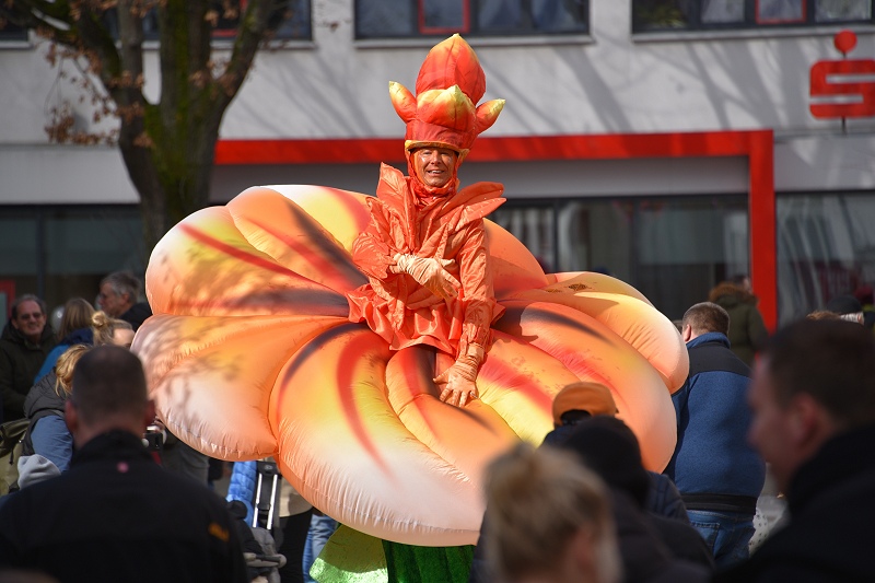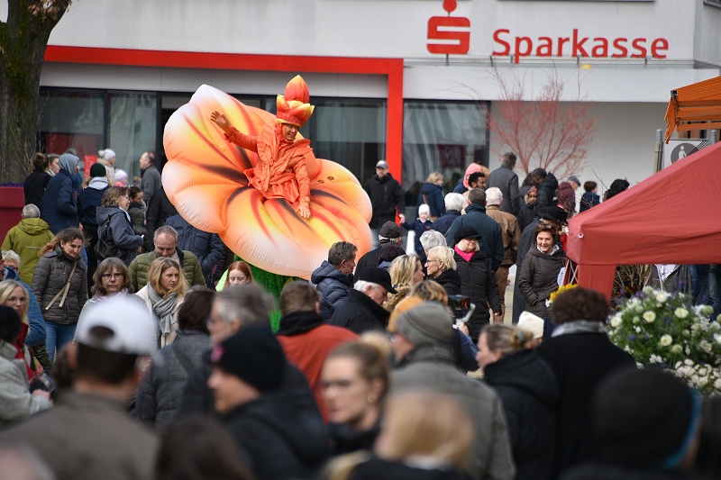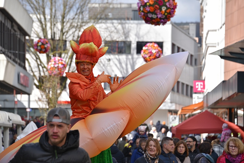 Ein „Eyecatcher“ in Größe und Farbenpracht war in diesem Jahr der laufende Gartenwalkact „La Fleur“, alias die „Blume auf Stelzen“ mit stolzen 3,40 Meter Höhe und 2,50 Meter Breite. Die 25 floralen Inseln hätten in diesem Jahr noch mehr herausgestochen, als in den Jahren zuvor, meinte eine Besucherin. Ein historischer Stuhl mit altem Fernsehergehäuse auf einer Blumeninsel, der zu einem Insektenhotel umfunktioniert worden war, fand sie als eine besonders pfiffige und nachhaltige Idee. Die Blumeninseln waren zumeist alle von den Studierenden der Technischen Hochschule OWL entworfen worden. Musikalisch sorgten die „Street Paraders“ am Sonntag mit Dixieland-Sound für gute Unterhaltung an jeder Straßenecke. Außerdem wieder mit im Boot waren neben vielen Informations- und Verkaufsständen auch die Rettungshundestaffel Dreiländereck-Holzminden und Castellos Puppentheater sowie die „Speedy cUP!s“, eine Abteilung des MTV Boffzen, die bei Speed-Stacking-Vorführungen gezeigt haben, was in ihnen steckt.