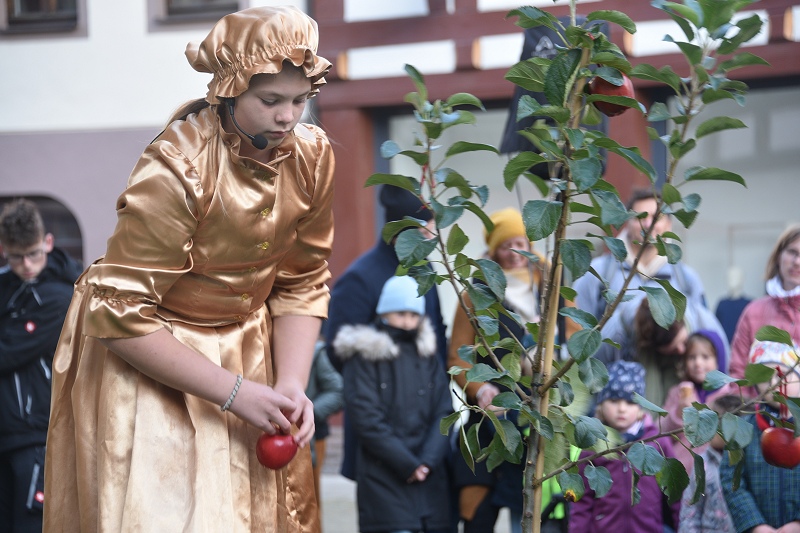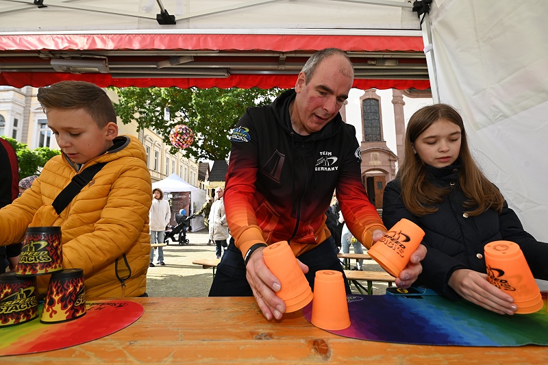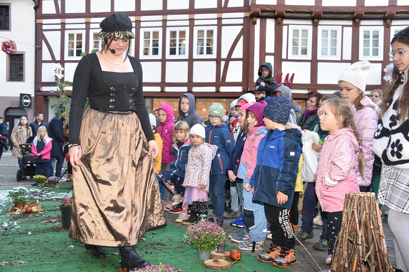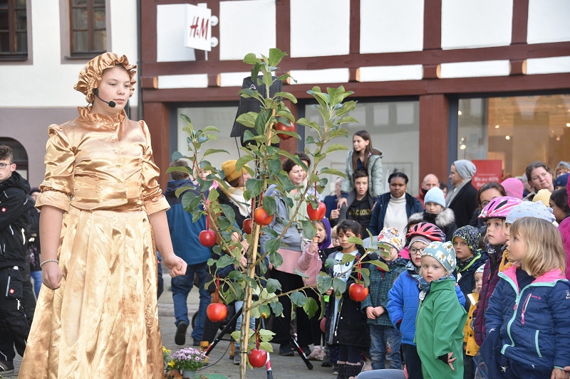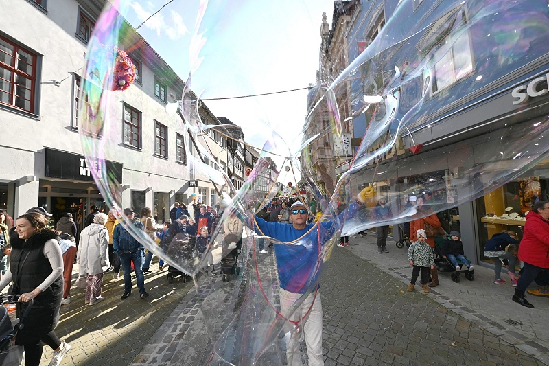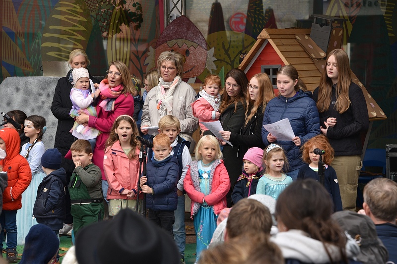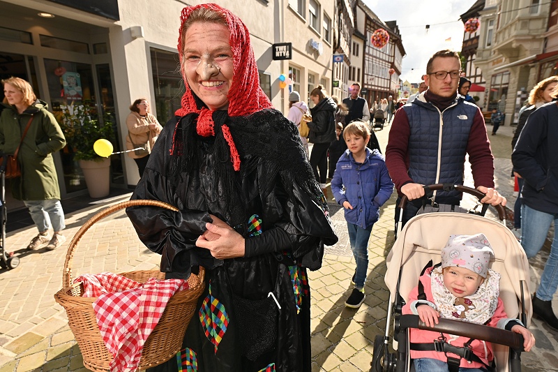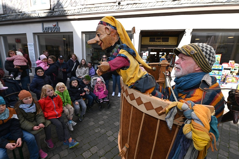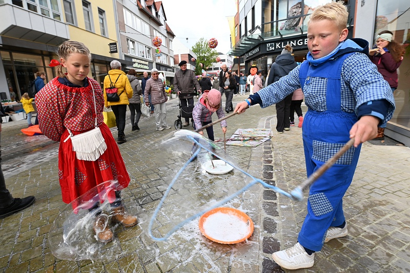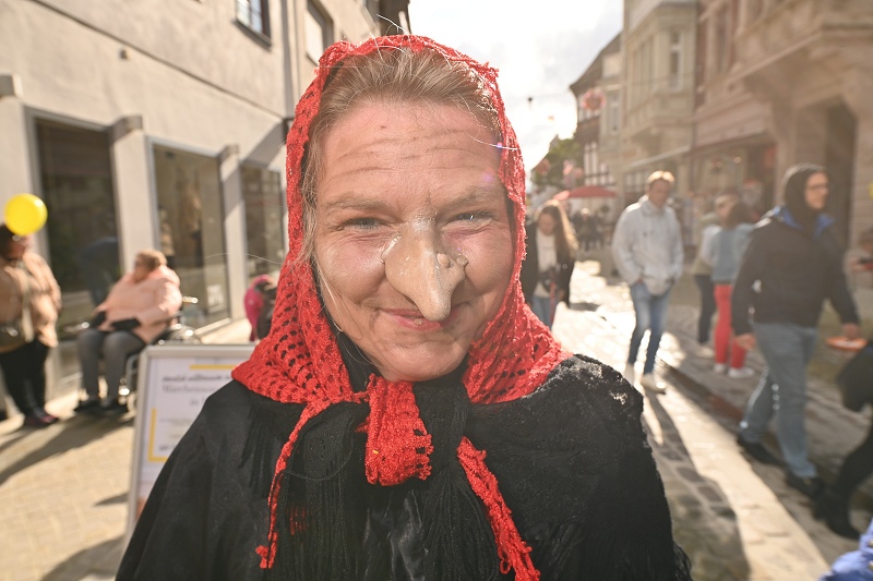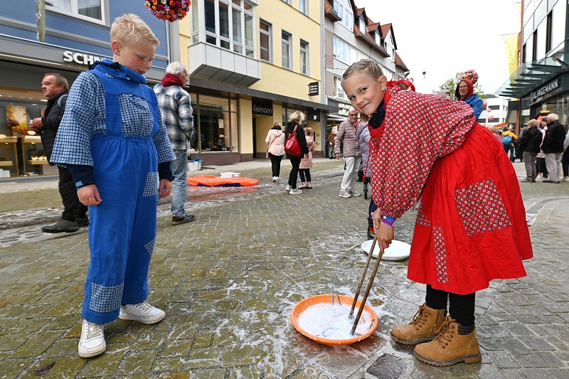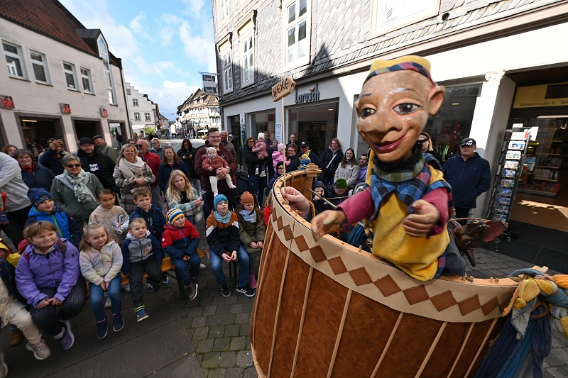 Ihre eigene Premiere feierte die Höxteranerin Lydia Dabringhausen als „Frau Holle“ beim gleichnamigen Märchenspiel vor der Dechanei. Sie ist die Nachfolgerin von Marianne Fien, die vom ersten Märchensonntag an, 27 Jahre lang die Frau Holle gespielt hat. Gut angekommen und viel Applaus erntete auch das von der Theater-AG des Petri-Ganztags aufgeführte Stück „Hänsel und Gretel“. An jeder Ecke war der verkaufsoffene Sonntag einfach märchenhaft. Gespannt lauschten die Kinder den Märchenerzählungen, schauten gespannt zu, wie der Kiepenkasper und Castellos Puppentheater dem Kasper und den anderen Märchenfiguren Leben einhauchte oder aber beteiligten sich am Bemalen der für den Verkehr gesperrten Westerbachstraße mit Kreide und beim Zaubern von märchenhaft großen Seifenblasen. Walking Acts haben das Programm des 28. Märchensonntags der Werbegemeinschaft Höxter e.V. abgerundet und für das Speed Stacking begeisterte der MTV Boffzen die zahlreichen kleinen und großen Besucherinnen und Besucher, von denen wieder einmal Tausende in Höxters Innenstadt strömten.