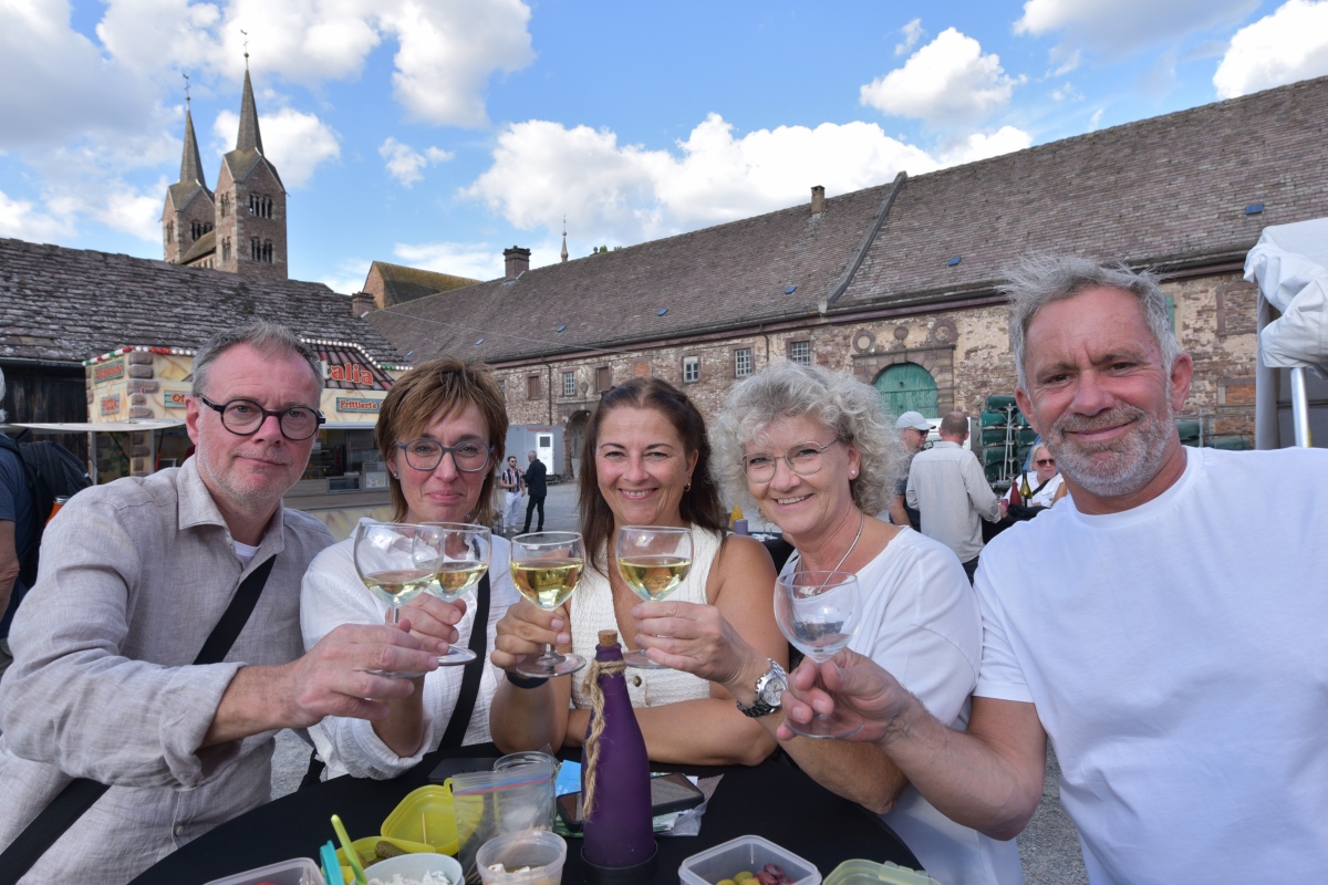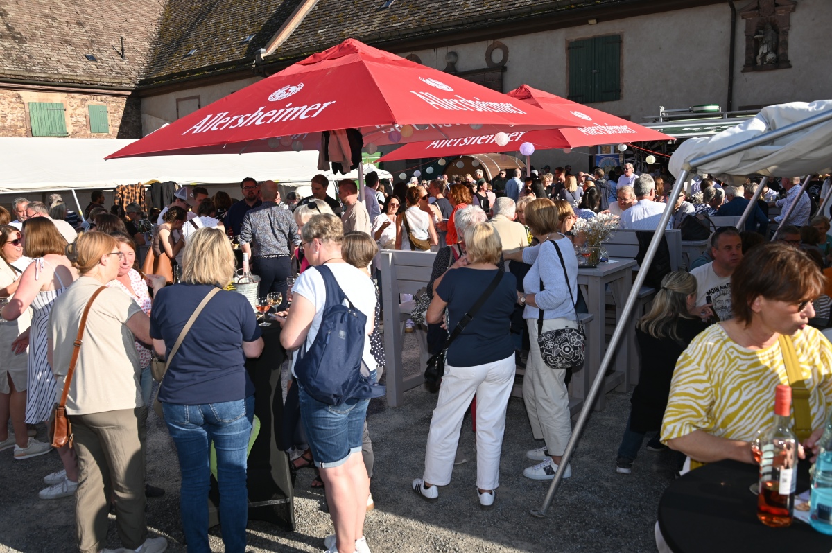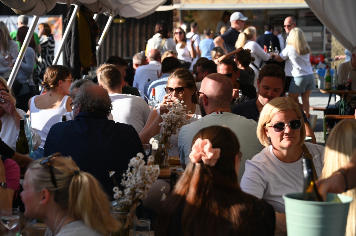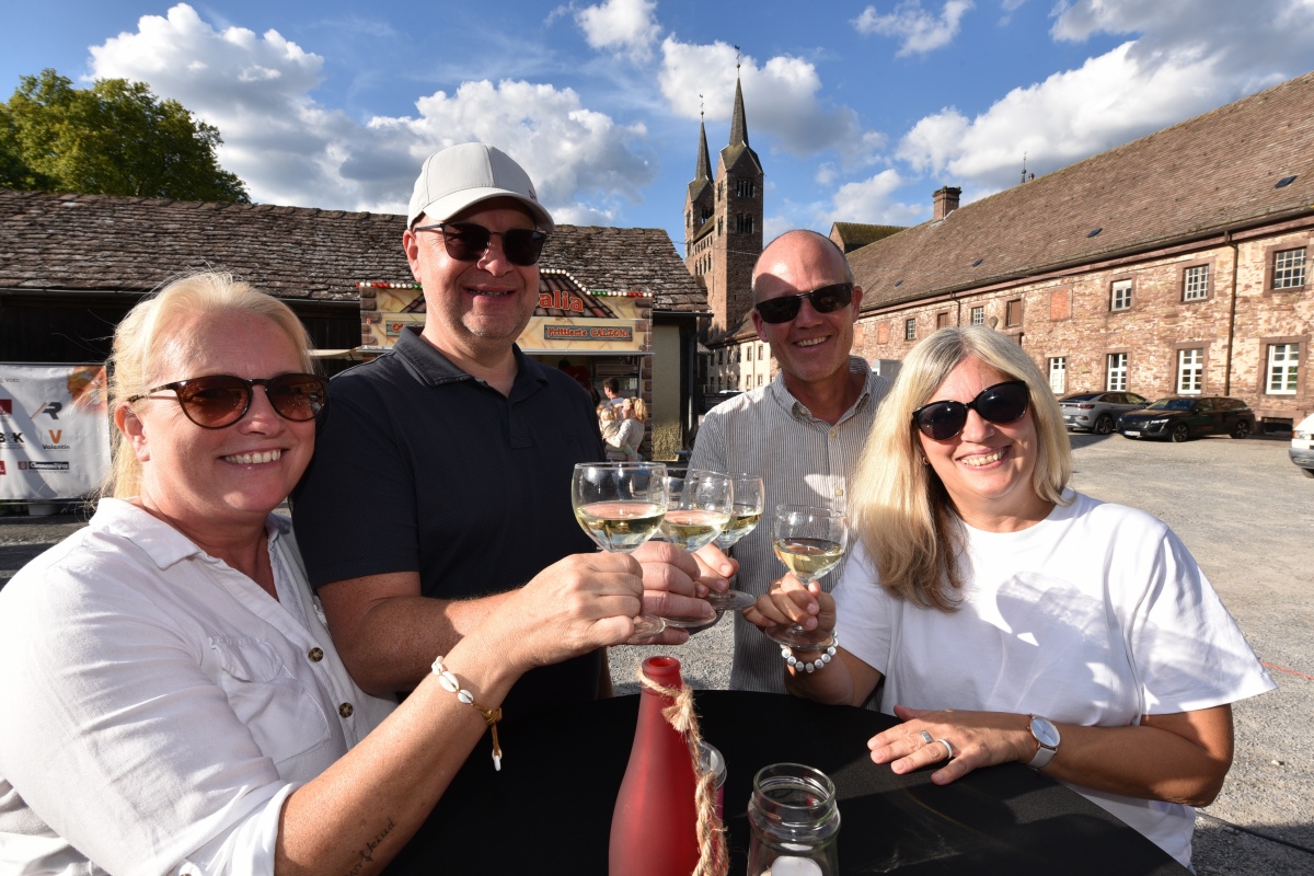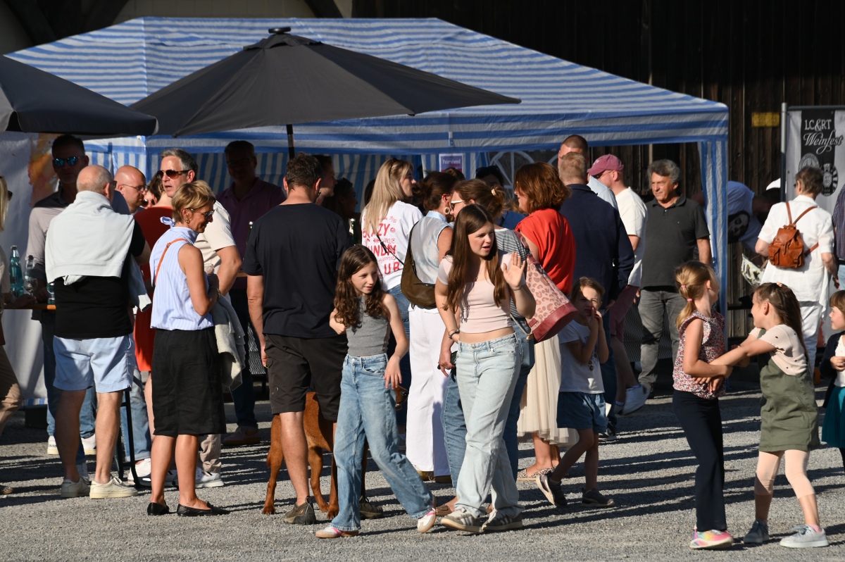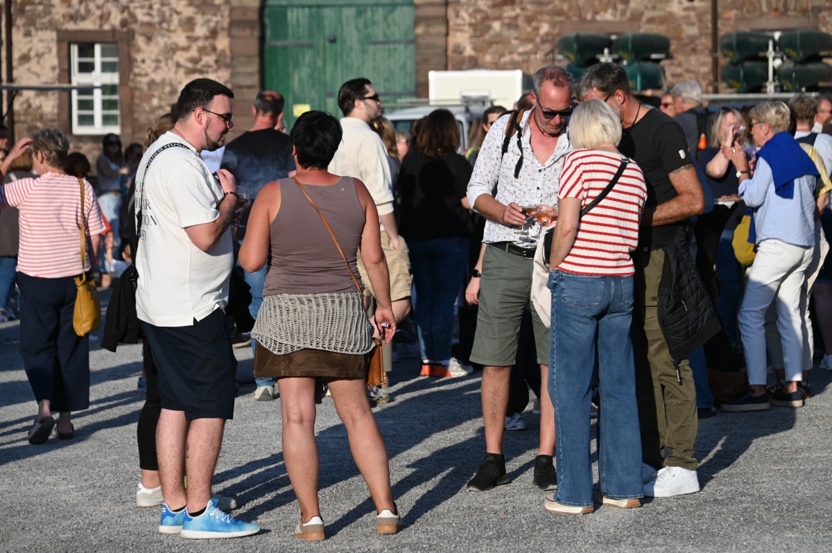 Höxter (TKu). So viele Gäste wie noch nie zog das Benefiz-Weinfest am vergangenen Samstag in den Corveyer Domänenhof: Geschätzt mehr als 1.000 Besucherinnen und Besucher genossen bei strahlendem Sonnenschein, gutem Wein, kulinarischen Spezialitäten und stimmungsvoller Musik das Weinfest. 1.003 Weinflaschen gingen über die Theke – im Vorjahr waren es 630. Bereits vor 16 Uhr strömten die ersten Gäste auf das Gelände vor dem Corveyer Weinhaus. Zum siebten Mal luden die Serviceclubs Ladies’ Circle 64 Höxter-Holzminden und Round Table 150 Höxter-Holzminden zu dem Fest ein, das bereits zum vierten Mal in der historischen Kulisse des Domänenhofs stattfand. „Bei traumhaftem Wetter und in malerischer Umgebung mit Blick auf das imposante Westwerk von Corvey bot sich eine ideale Atmosphäre“, meinte eine Besucherin und ergänzte: „Die Atmosphäre des Domänenhofs passt perfekt zum Weinfest.“