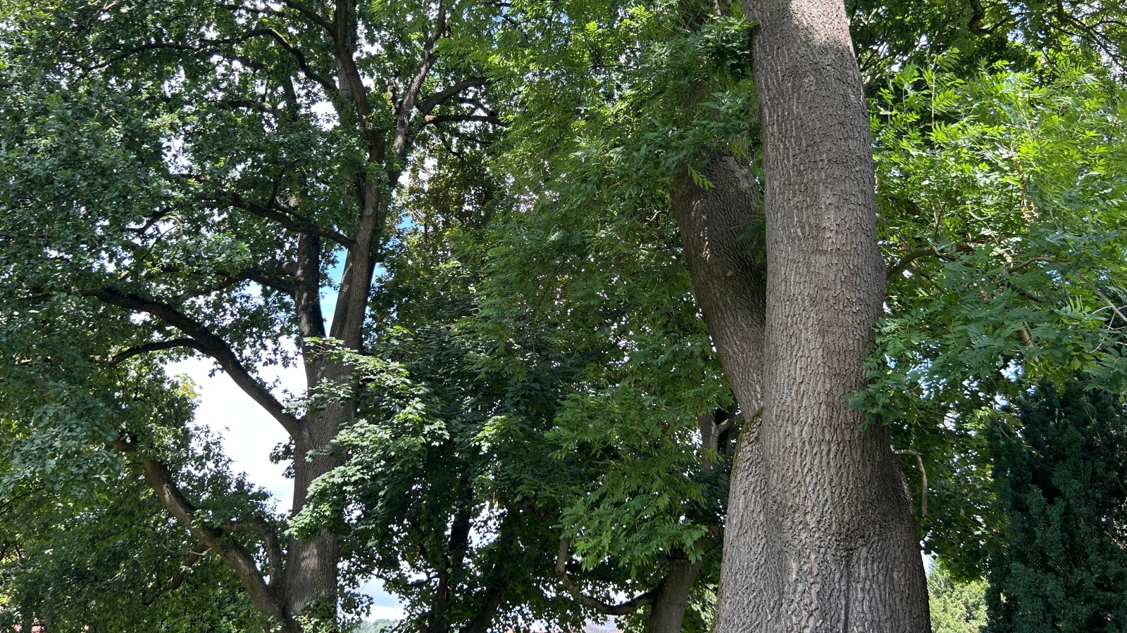 Die beiden Bäume, deren Namen mit „E“ beginnen, wurden vermutlich 1772 gepflanzt und sind heute rund 27 Meter hoch. Ihr Stammumfang beträgt zwischen vier und sechs Metern. Gemeinsam prägen sie seit Jahrhunderten das Bild des Rathausparks und gelten als lebendige Zeugen der Stadtgeschichte.
