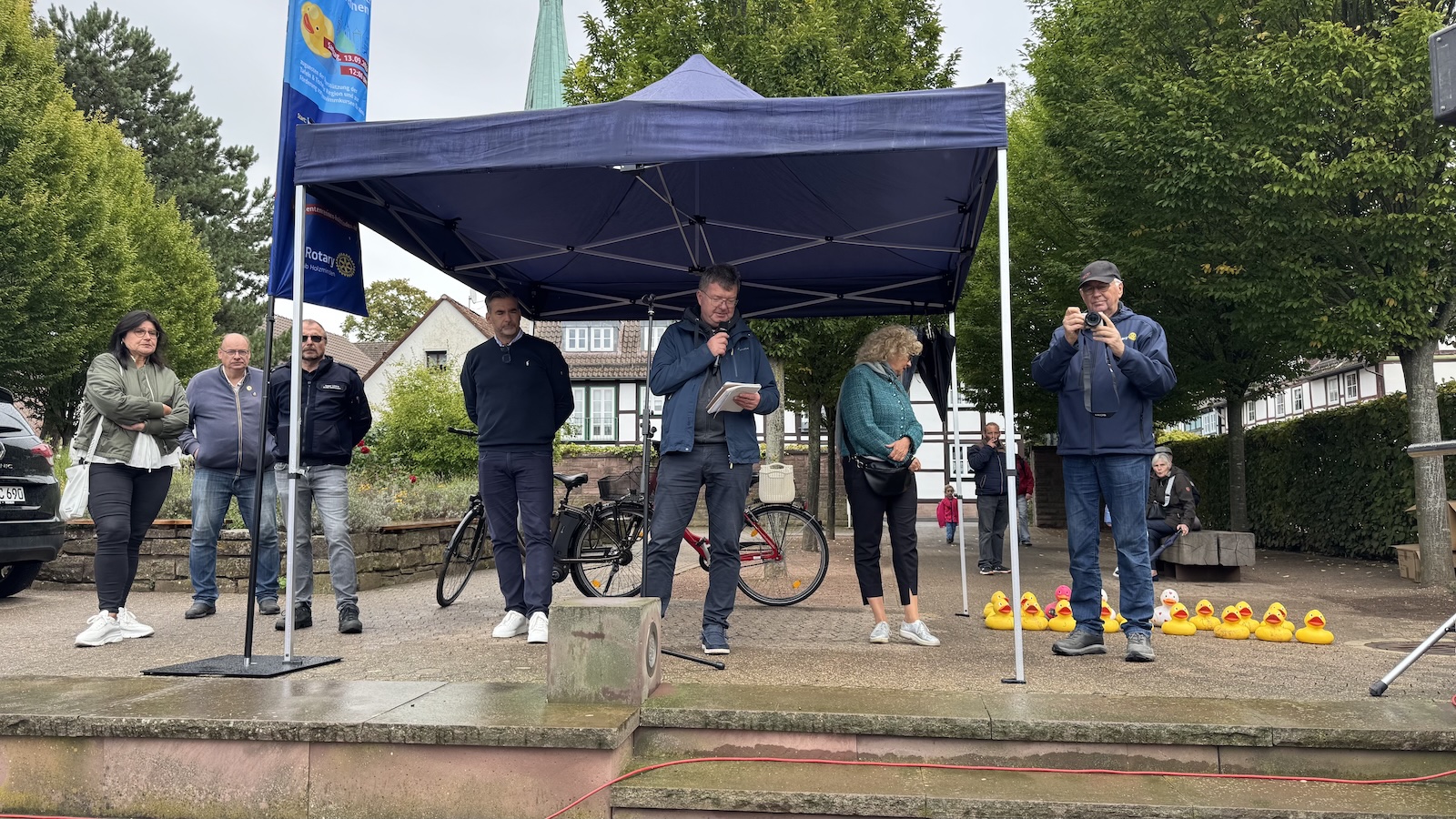 Doch so verspielt das Ganze auch aussieht – dahinter steckt, vor allem in diesem Jahr, auch eine Mission, die Rotary-Präsident Reinhard Nowak besonders am Herzen liegt: „Enten können von Geburt an schwimmen, Kinder müssen es erst lernen.“ Immer mehr Kinder können nicht sicher schwimmen, Unfälle häufen sich. Genau hier setzt der Erlös der Veranstaltung an. Die Spenden fließen nicht nur an die lokalen Tafeln und Tische in Holzminden und Höxter, das Frauenhaus und weiteren Vereinen, sondern vor allem an die DLRG-Ortsgruppe Holzminden und die Wasserfreunde Holzminden. Die Vorsitzende der Wasserfreunde,Anja Gaede, freute sich riesig: „Wir können damit Seepferdchenkurse finanzieren – vor allem Schwimmnudeln und Fortbildungen für unsere Übungsleiter.“