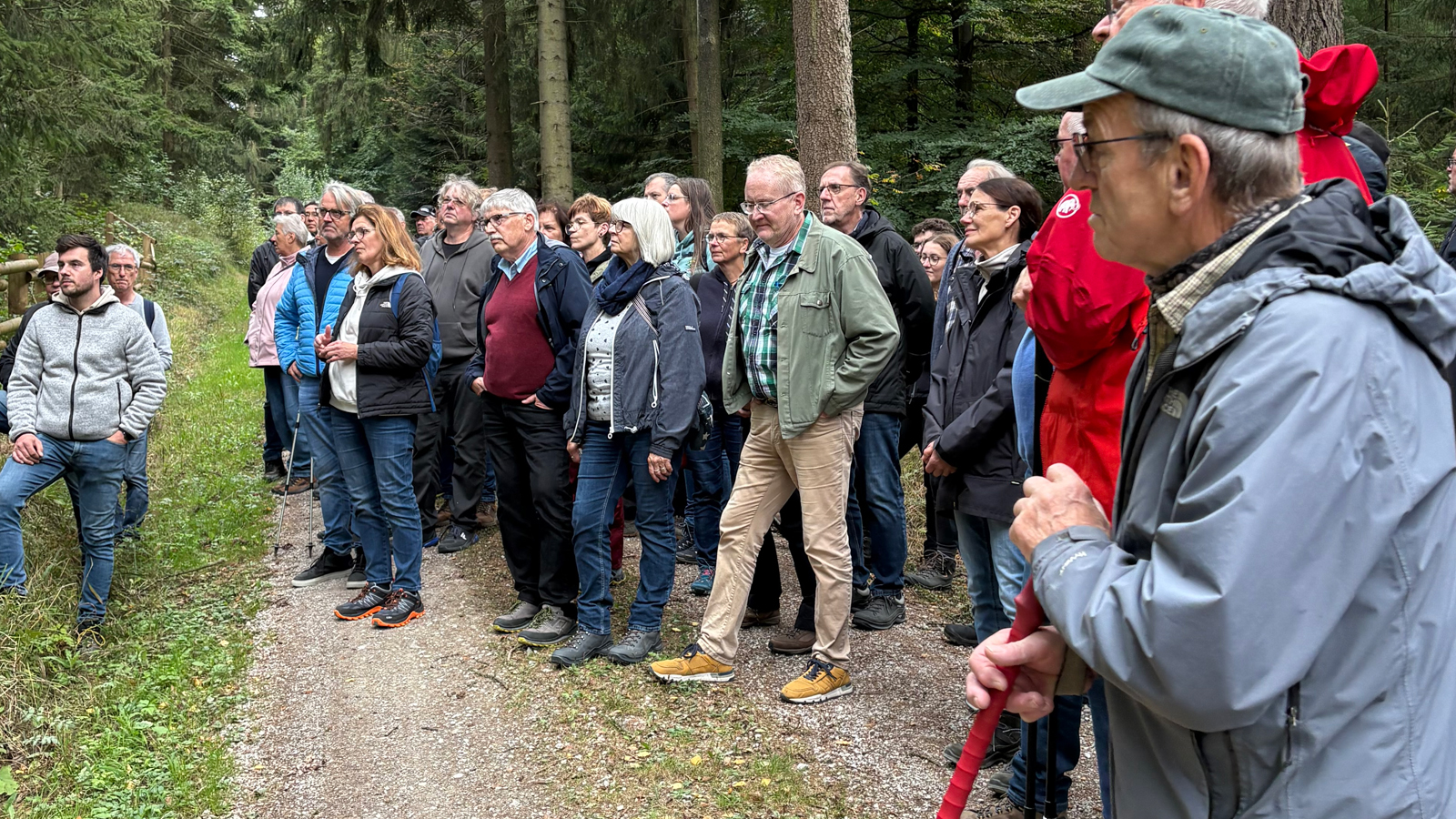 Delligsen (red). Bei bestem Herbstwetter machten sich rund 70 Teilnehmerinnen und Teilnehmer auf den Weg: Der WIR-Verein Delligsen hatte zur diesjährigen Grenzbegehung eingeladen – und zahlreiche Vertreterinnen und Vertreter örtlicher Vereine folgten dem Aufruf. Startpunkt war das Feuerwehrgerätehaus in Delligsen, von wo aus die Gruppe mit Bussen nach Bornemannshausen gebracht wurde. Von dort führte der etwa zehn Kilometer lange Wanderweg in Richtung Barbara-Baude.