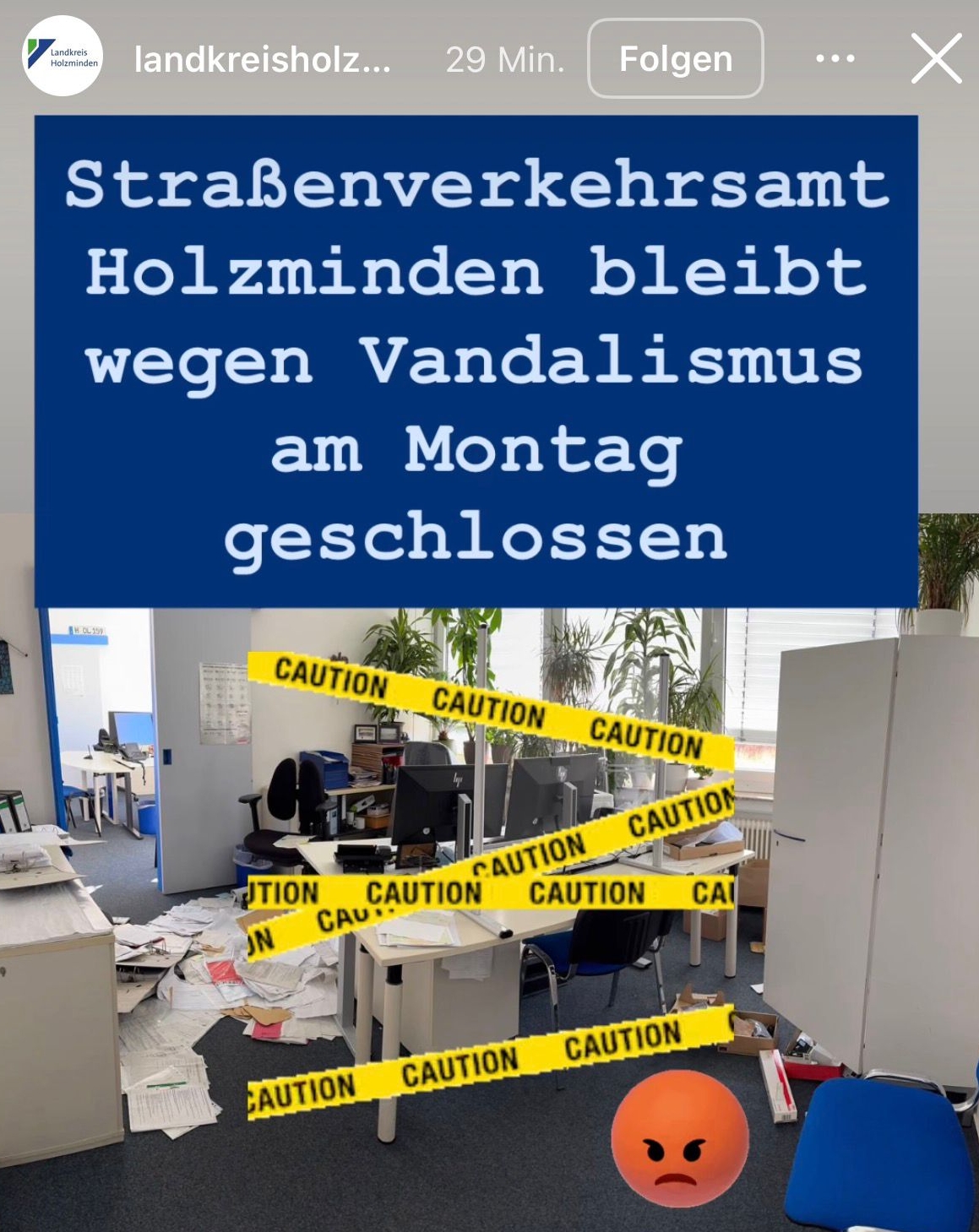 Holzminden (red). Nach einem Vorfall von Vandalismus bleibt das Straßenverkehrsamt Holzminden am Montag geschlossen. Das teilte der Landkreis Holzminden über seine Social-Media-Kanäle mit.