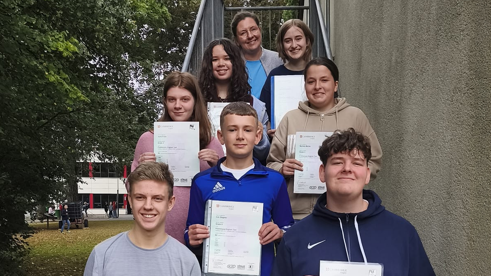 Mitte Juni stellten sich Anna Frank, Elias Hildebrandt, Lovis Kessler, Gloria Konrad, Eosander Kühl, Marlene Marten, Clemens Neiner, Daniela Pereu, Aleksandra Vlasenko, Erik Ziegeler, Friederike Reimnitz und Mira Rittgerodt der anspruchsvollen Sprachprüfung. Diese wurde beim Landesverband der Volkshochschulen in Hannover, dem offiziellen authorised exam centre for Cambridge English, abgelegt.
