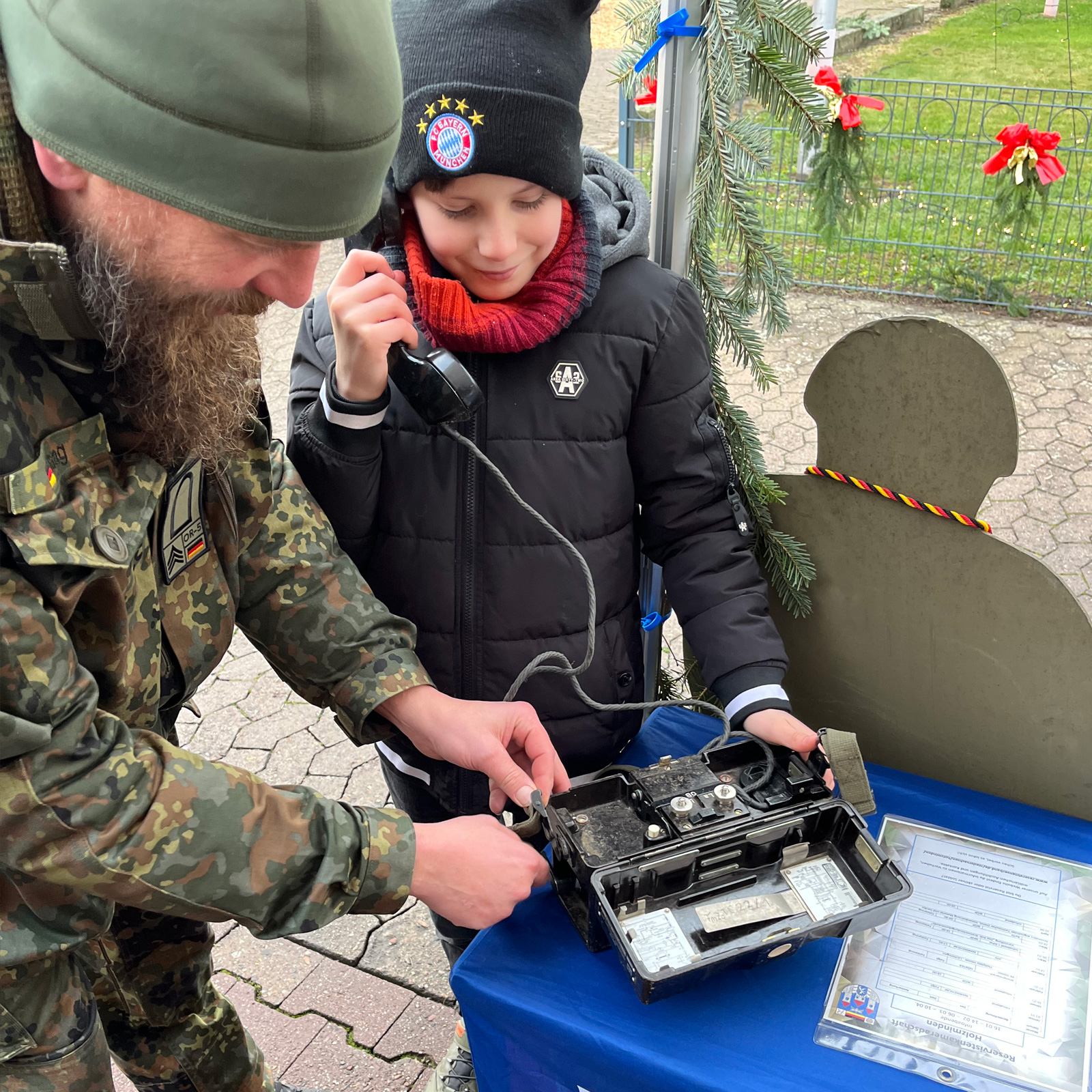 Der Stand der Reservisten entwickelte sich schnell zu einem beliebten Treffpunkt für alle Generationen. Technikbegeisterte Bürgerinnen und Bürger hatten die Möglichkeit, historische Fahrzeuge und militärische Geräte hautnah zu erleben. Die Kameraden der RK Holzminden standen dabei bereit, um die Geschichte und die Funktion der Exponate anschaulich zu erläutern und so einen spannenden Einblick in die militärische Historie zu gewähren.