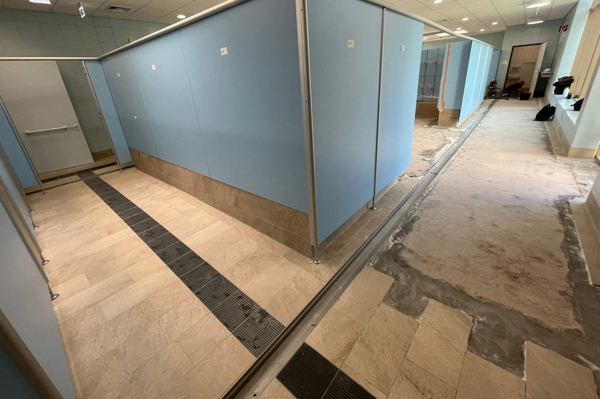 Im Rahmen eines Pressetermins machte der Bürgermeister auch deutlich, wie gravierend die Schäden tatsächlich waren. Die Fliesen seien unsachgemäß eingebaut worden, was dazu geführt habe, dass sich zahlreiche Bereiche gelöst oder sogar gebrochen hätten. „Bei den Schadensbildern, die wir vorgefunden haben, hätte man an vielen Stellen nicht mehr auf den Fliesen laufen können. Es sah teilweise so aus, als hätte ein Erdbeben das Bad erschüttert“, beschrieb Hartmann den Zustand. Betroffen waren nahezu alle Beckenumgänge, die Umkleidebereiche, Duschen und Toiletten sowie sogar ein kleiner Teil des Beckenbodens. Als unabhängiger Beobachter überwachte Architekt Peter Korthals von der BKS Architekten GmbH die Sanierungsarbeiten. Durch systematisches Abklopfen der Fliesen habe man genau feststellen können, welche Bereiche erneuert werden mussten. Ende September stand schließlich der detaillierte Sanierungsplan fest. Laut Dezernatsleiter Stefan Fellmann konnte Anfang Oktober mit den Arbeiten begonnen werden. Anfang Dezember waren diese bereits abgeschlossen. „Dass es so gut geklappt hat, freut uns sehr, das ist ein schönes Weihnachtsgeschenk an die Bürgerinnen und Bürger“, sagte Fellmann mit Blick auf den engen Zeitplan und das positive Ergebnis.