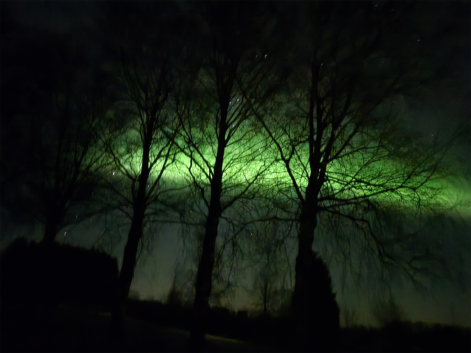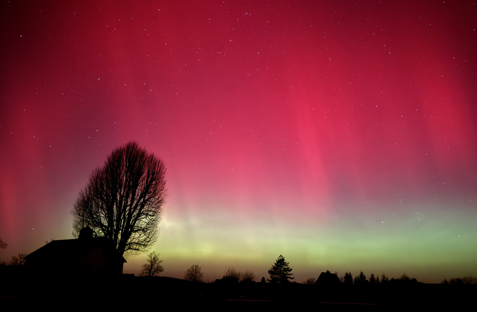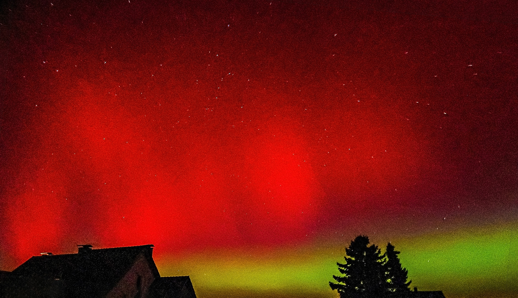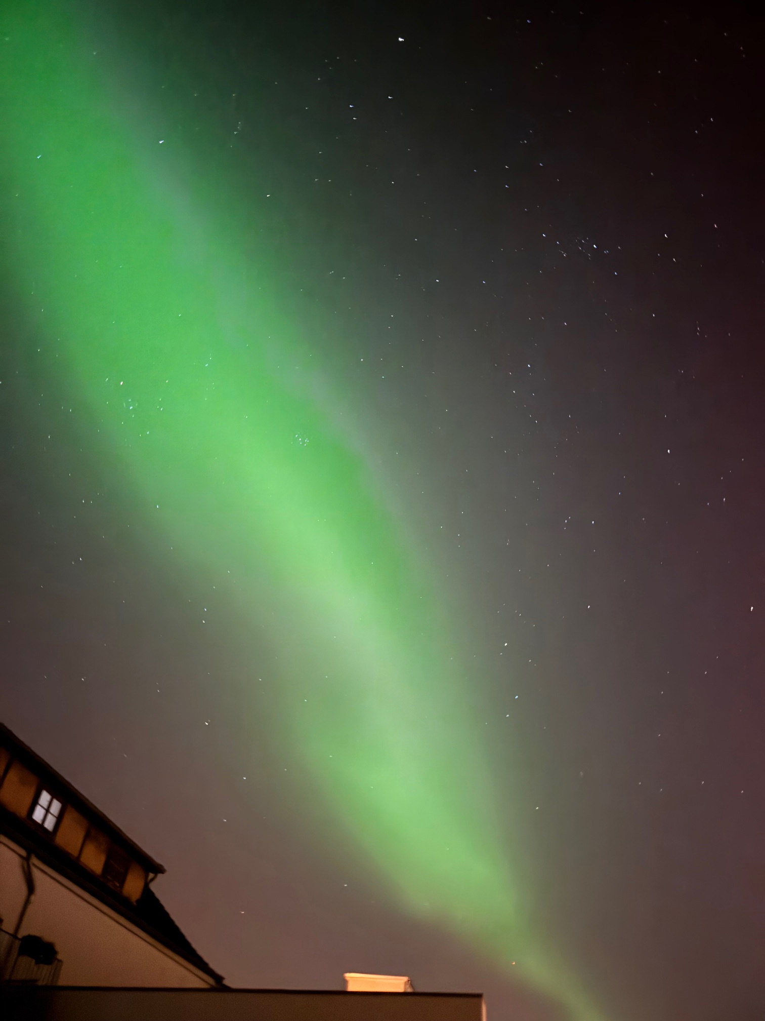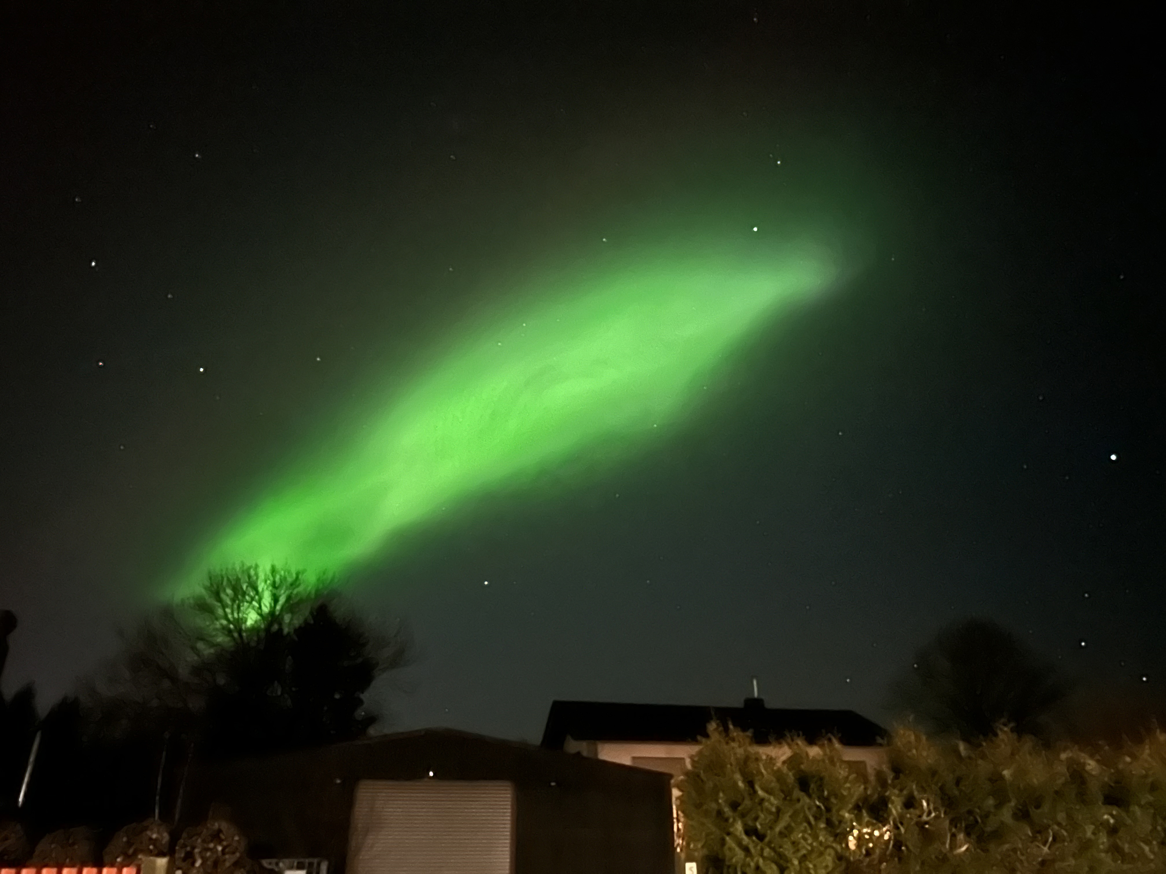 Normalerweise erscheinen Polarlichter in Mitteleuropa, wenn überhaupt, eher als blasses, weißliches Leuchten. Dass in dieser Nacht auch rötliche und grünliche Farbtöne deutlich erkennbar waren, gilt als klares Zeichen für eine besonders hohe Intensität. Sichtbare Farben mit bloßem Auge treten nur bei sehr starken geomagnetischen Ereignissen auf.