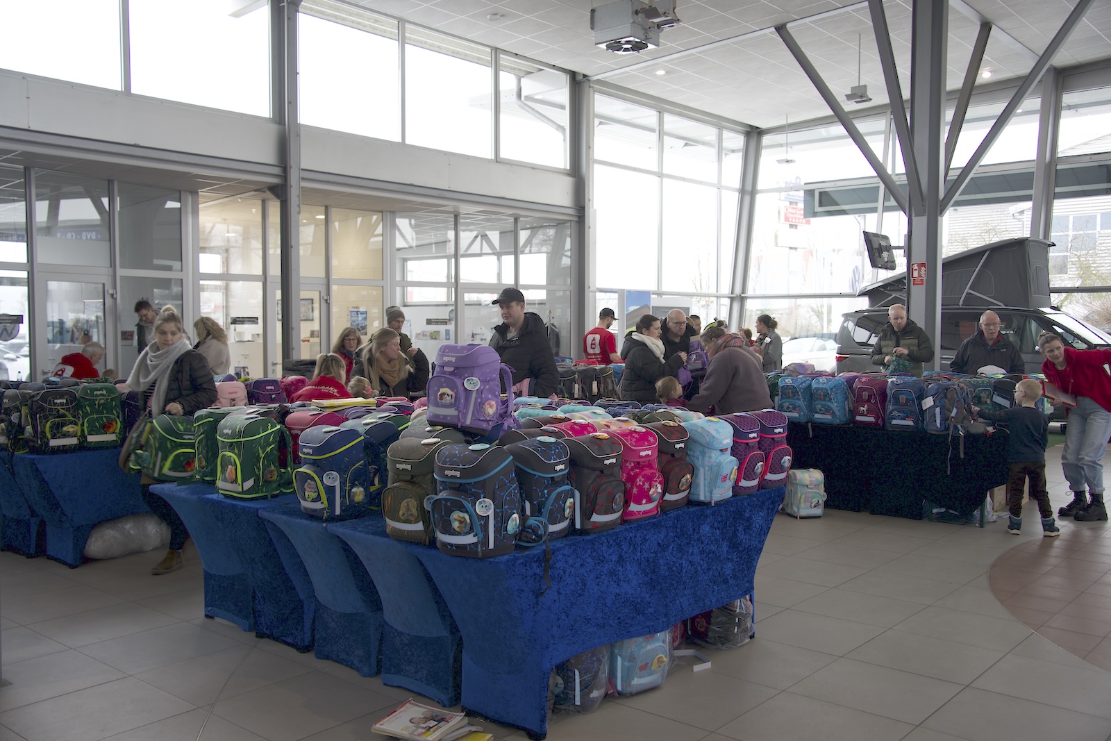Holzminden (lbr). Mehrere hundert Eltern und ihre Kinder nutzten am vergangenen Samstag die Gelegenheit, im Autohaus Vatterott einen passenden Schulranzen für den bevorstehenden Schulstart zu finden. Gemeinsam mit dem Fachhändler Ranzenmaxx hatte das Unternehmen zur Schulranzenparty eingeladen und verwandelte das VW-Gebäude zwischen 9 und 16 Uhr zu einer Shopping-Meile. Das Team von Ranzenmaxx nahm sich dabei für jedes Kind ausreichend Zeit und beriet gezielt zu Ergonomie, Passform und Tragekomfort.