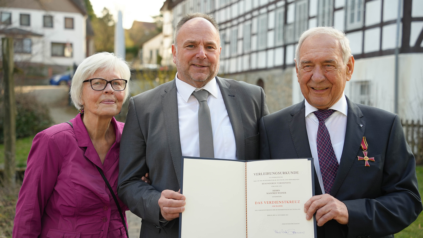 Ottenstein (zir). Mit einer der höchsten staatlichen Auszeichnungen ist Manfred Weiner am Freitagnachmittag in der Landherberge Ottenstein geehrt worden. Für sein jahrzehntelanges Engagement erhielt er das Verdienstkreuz am Bande des Verdienstordens der Bundesrepublik Deutschland. Die Auszeichnung würdigt ein außergewöhnlich langes und prägendes Wirken in der Kommunalpolitik, das die Entwicklung Ottensteins sowie der Samtgemeinden Polle und Bodenwerder-Polle über Generationen hinweg beeinflusst hat.