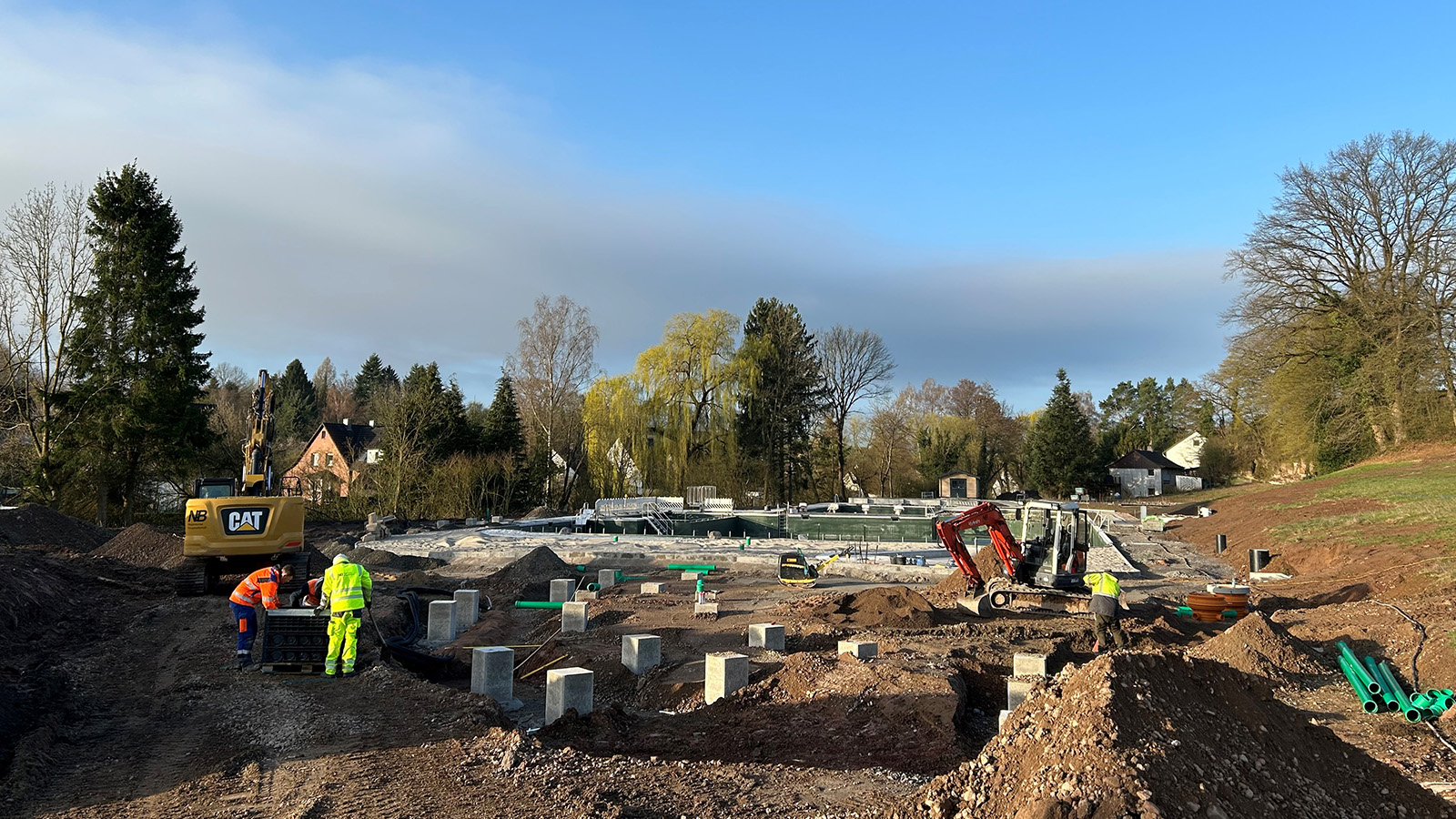 Bevern (zir). Auf der Baustelle des künftigen Naturbads in Bevern sind wesentliche Bauabschnitte abgeschlossen. Die Schwimmbecken samt technischer Ausstattung gelten als fertiggestellt. Derzeit konzentrieren sich die Arbeiten auf die Wiederherstellung der Außenflächen sowie auf vorbereitende Maßnahmen für die Aufstellung von Containern, die voraussichtlich Ende April oder Anfang Mai installiert werden sollen.