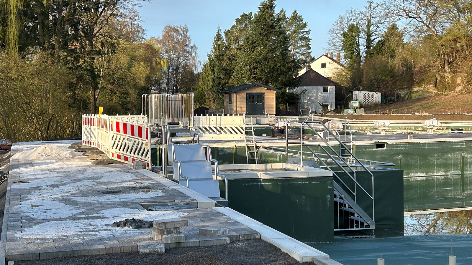 Nach Angaben der Verwaltung bleibt das Ziel bestehen, das Naturbad zu Beginn der Sommerferien in Niedersachsen Anfang Juli zu eröffnen. Voraussetzung ist, dass die verbleibenden Arbeiten planmäßig abgeschlossen werden können. Da das neue Eingangsgebäude zu diesem Zeitpunkt voraussichtlich noch nicht zur Verfügung steht, wird eine vorübergehende Nutzung ohne Eintrittsgebühren geprüft. Eine abschließende Entscheidung dazu steht noch aus.