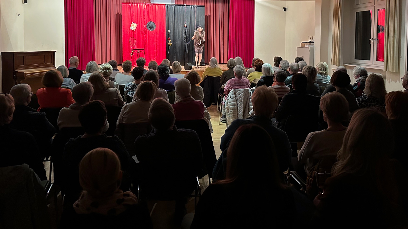 Mit viel Humor und einer Stimme, die zwischen sanfter Ironie und beißender Satire wechselte, führte Seifert durch die Jahrzehnte. Sie schlüpfte in der Revue immer wieder in neue Rollen, der Zeit entsprechend, mit nur angedeuteten Kostümierungen. So waren in den wilden Zwanzigern Frauen plötzlich sichtbar – tanzend, rauchend, vermeintlich frei. Doch diese Freiheit war nicht von Dauer: Es gab neue Abhängigkeiten und die Frauen rutschten wieder in die Anpassung, von der Femme Fatale zum Mutterkreuz.