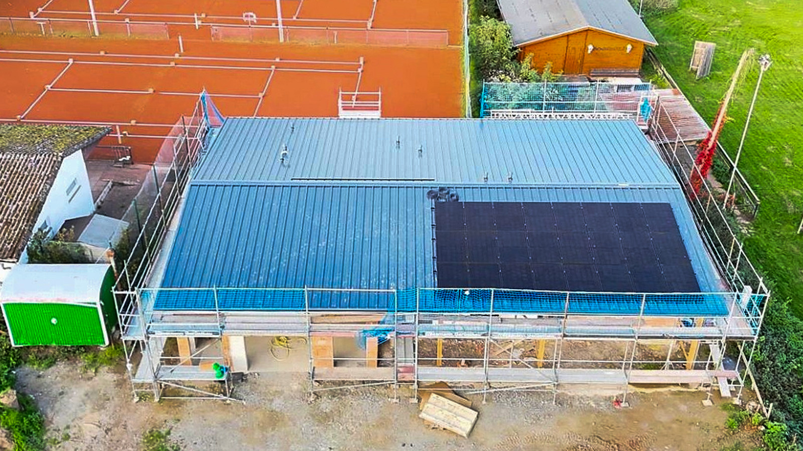 Das Gebäude aus den sechziger Jahren war stark sanierungsbedürftig, und eine Komplettmodernisierung schien lange Zeit kaum finanzierbar. Nun schreiten die Arbeiten sichtbar voran: Der Rohbau steht, das Dach wurde erneuert und mit einer Photovoltaikanlage ausgestattet. Diese soll im kommenden Jahr die neue induktive Heizungsanlage betreiben und zugleich das Duschwasser erwärmen. Zudem wird der Gemeinschaftsraum deutlich vergrößert, und ein zusätzlicher Duschbereich für die Heimmannschaft entsteht, damit künftig getrennte Bereiche für beide Teams zur Verfügung stehen. Eine umfassende Dämmung trägt dazu bei, die Heizkosten langfristig niedrig zu halten.
