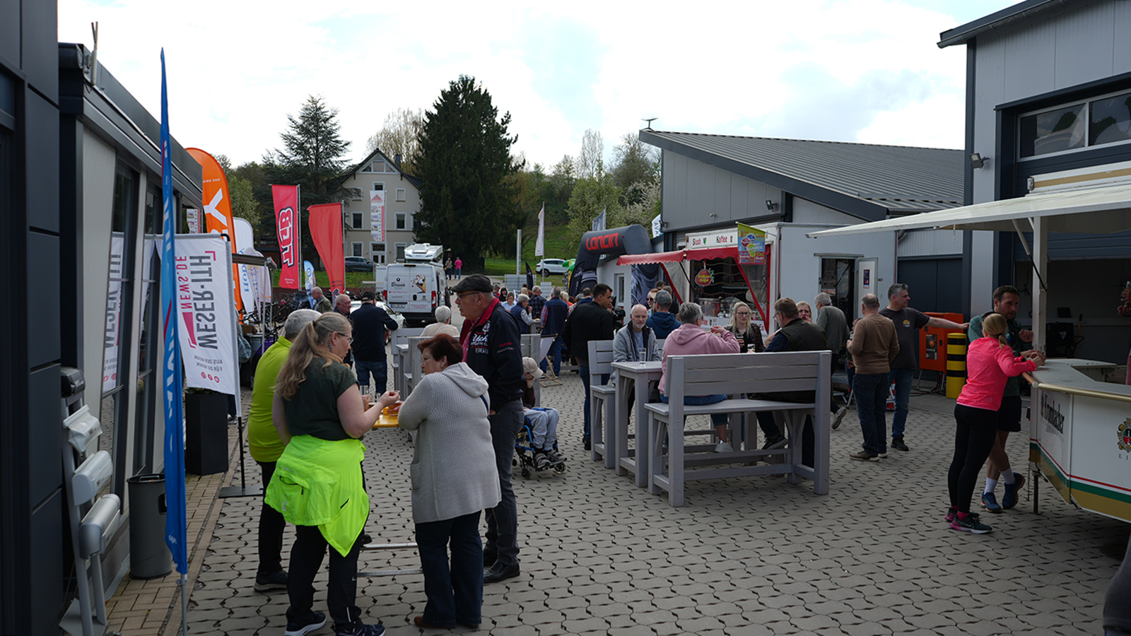 Für zusätzliche Abwechslung sorgten weitere Ausstellungsstücke und Angebote: Dazu zählten eine Quadausstellung, ein Porsche 928 S aus den 70er Jahren sowie ein auffällig folierter Mercedes AMG. Heinser Fittschen war mit einem Großaufgebot an Zweitaktern vor Ort und machte sowohl auf das Vorhofflimmern als auch auf die Barcelona-Reise vor zwei Jahren aufmerksam.