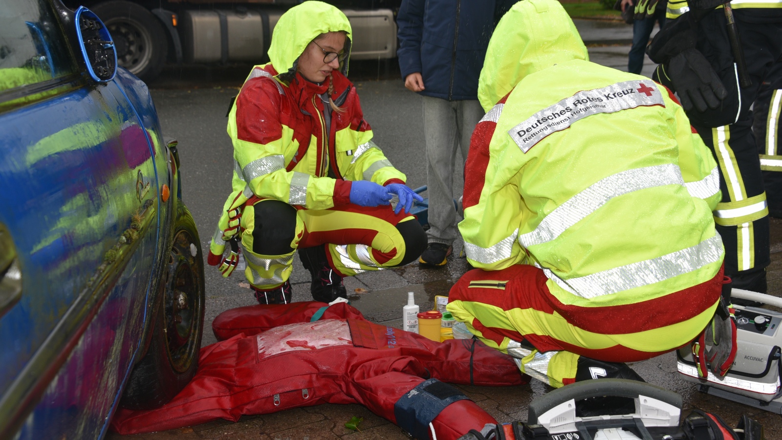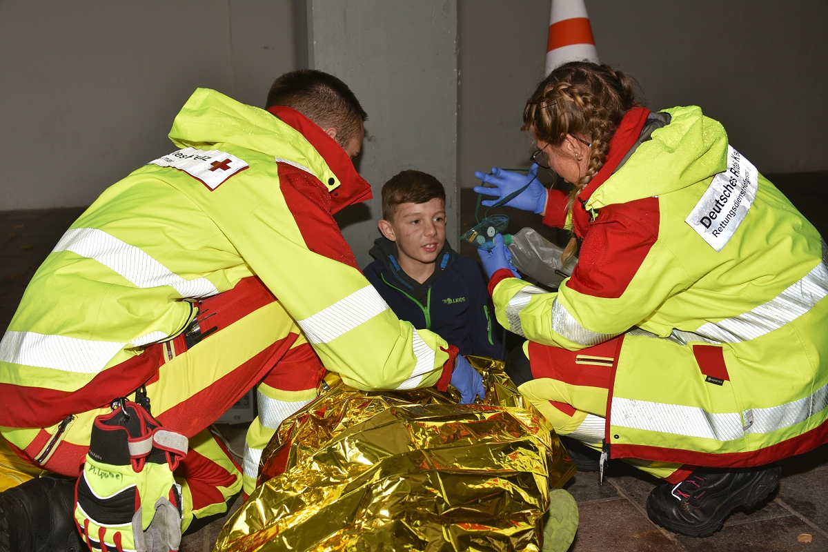 Die Übung war in vier Szenarien gegliedert, die an unterschiedlichen Orten in Beverungen und Dalhausen stattfanden. Bei einer Übung im Industriegebiet Beverungen mussten die Einsatzkräfte ein Kind retten, das unter einem Pkw eingeklemmt war. Da passendes technisches Gerät nicht verfügbar war, stand die Feuerwehr vor einer kniffligen Aufgabe und musste mit dem vorhandenen Material improvisieren. Parallel kümmerte sich der Rettungsdienst um die Versorgung des kleinen Patienten. „Für sie eine besondere Herausforderung, da Medikamente bei Kindern exakt nach Körpergewicht dosiert werden müssen“, sagte der Feuerwehr-Ausbilder und Notfallsanitäter Jan Nolte, der für dieses Szenario verantwortlich war und auch seine Kinder Lennart (10) und Jonathan (7) als vom Einsatz betroffene Kinder eingebunden hatte.