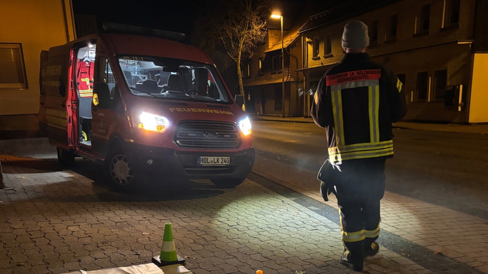 Mit rund 35 Einsatzkräften und allen verfügbaren Fahrzeugen setzte die Feuerwehr Delligsen die Suche fort. Mehrere Straßenzüge im Ortsgebiet wurden systematisch abgegangen. Zusätzlich kam eine Drohne der Drohnenstaffel des Landkreises Holzminden mit Wärmebildtechnik zum Einsatz. Die Koordination des Einsatzes übernahm die Einsatzleitwagen-Gruppe im Feuerwehrhaus Delligsen. Die Einsatzleitung lag bei Ortsbrandmeister Dennis Ohlscher.
