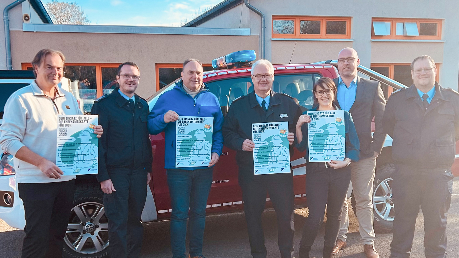 Das Plakat zeigt ein aufmerksamkeitsstarkes Motiv, das gezielt Feuerwehr- und Katastrophenschutzeinheiten anspricht. Ein deutlich sichtbarer QR-Code führt direkt zur Onlinebeantragung der Ehrenamtskarte auf der Website des ZEE. Die Plakate werden in Feuerwehrgerätehäusern sowie an weiteren relevanten Standorten des Katastrophenschutzes im gesamten Landkreis angebracht. „Wir möchten die Ehrenamtlichen dort ansprechen, wo sie aktiv sind“, betonte Ralf Knocke. Gleichzeitig gehe es darum, gesellschaftliche Anerkennung sichtbar zu machen: „Das Ehrenamt ist unverzichtbar für den Zusammenhalt – und wir schätzen das Engagement jedes Einzelnen.“