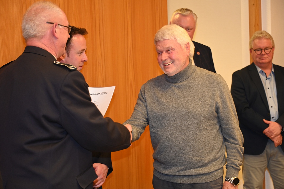 Auch passive Mitglieder wurden geehrt. Ehrenbrandmeister Manfred Schaper erhielt eine Urkunde für 35 Jahre passive Mitgliedschaft. Für 30 Jahre wurden Rudi und Peter Roloff ausgezeichnet. In Abwesenheit geehrt wurden Georg Pollmann für 40 Jahre sowie Martin Grünheid für 20 und Dietmar Labrenz für zehn Jahre passive Mitgliedschaft.