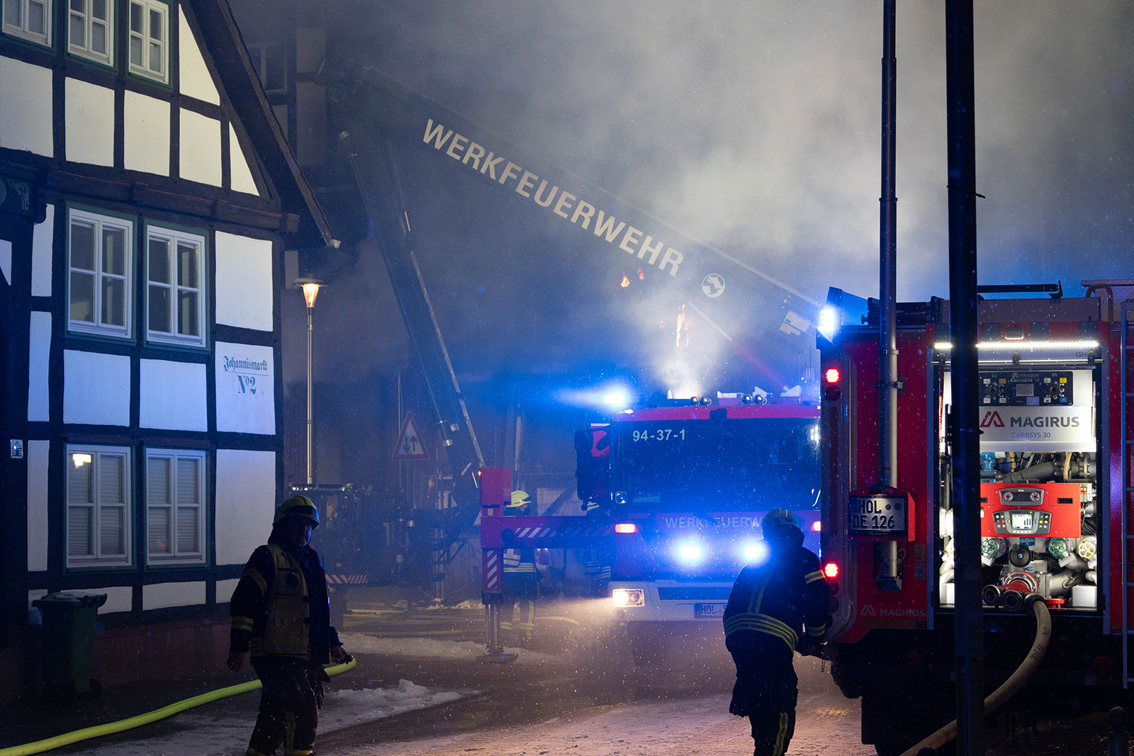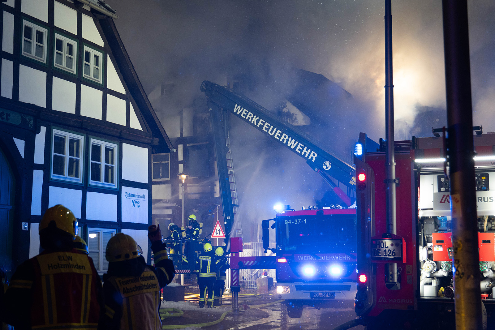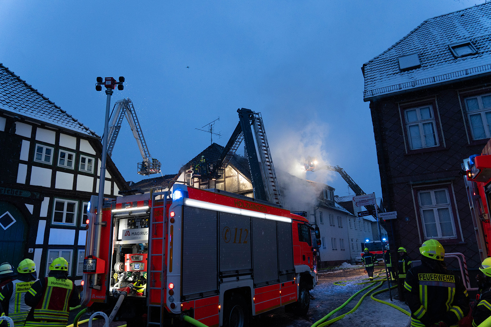 Aufgrund des drohenden Übergreifens wurde zudem die Feuerwehr Stadtoldendorf mit einem Löschzug und einer weiteren Drehleiter nachalarmiert. Das THW unterstützte die Einsatzkräfte unter anderem mit einer Drohne, die mit einer Wärmebildkamera ausgestattet war.