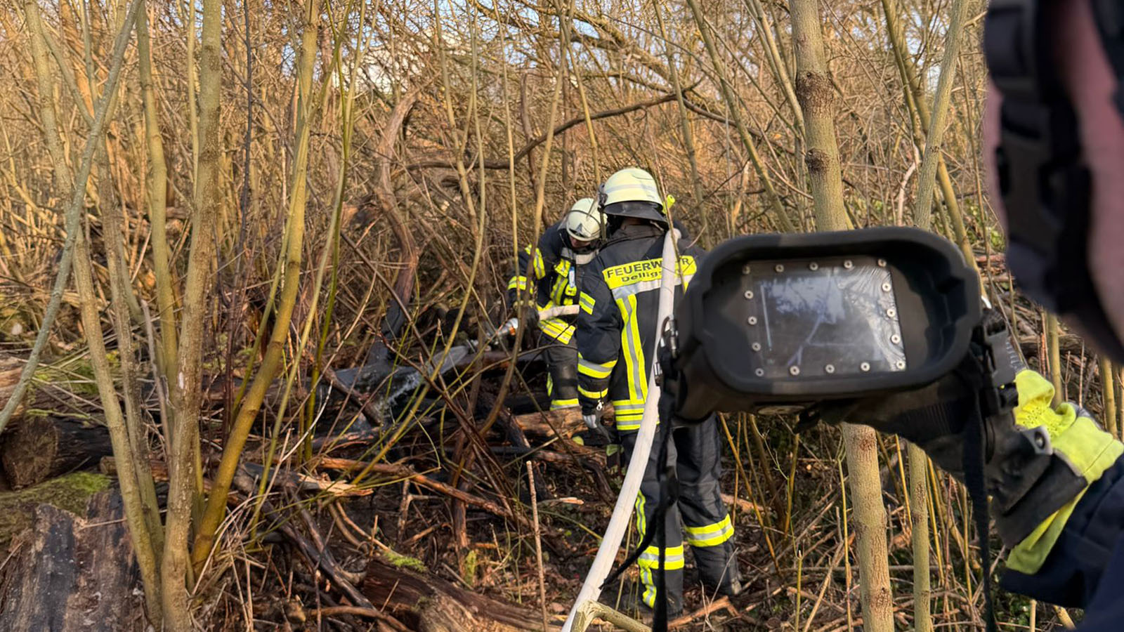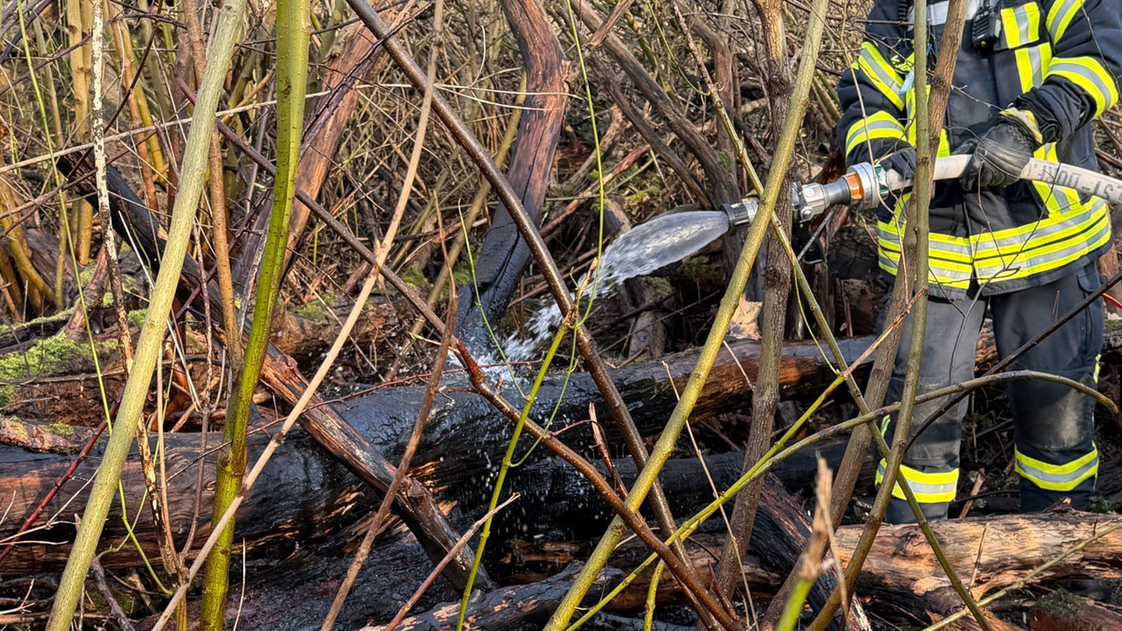 Beim Eintreffen der Einsatzkräfte brannte Unterholz auf einer Fläche von rund zwei Quadratmetern. Die Feuerwehr begann umgehend mit den Löscharbeiten.