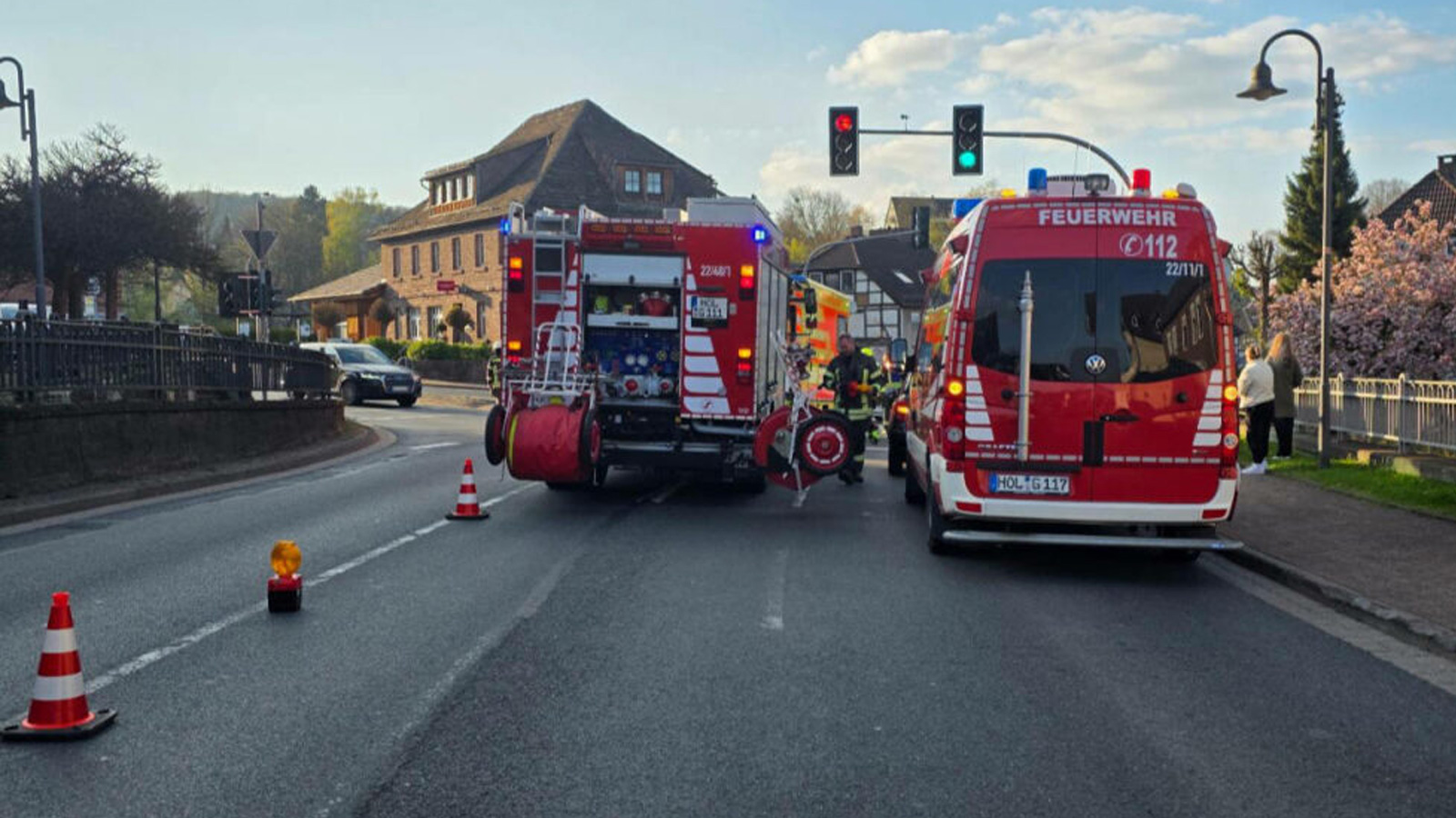 Eschershausen (red). Zu einem Auffahrunfall ist es am Dienstag, 14. April 2026, gegen 18.33 Uhr an der Brauhauskreuzung in Eschershausen gekommen. Die Ortsfeuerwehr Eschershausen wurde alarmiert und sicherte die Einsatzstelle ab. Zudem betreuten die Einsatzkräfte zwei betroffene Personen. Auslaufende Betriebsstoffe wurden aufgenommen, um weitere Gefahren zu vermeiden. Ein beteiligtes Fahrzeug war nach dem Unfall nicht mehr fahrbereit und wurde von der Feuerwehr auf einen nahegelegenen Parkplatz verbracht.