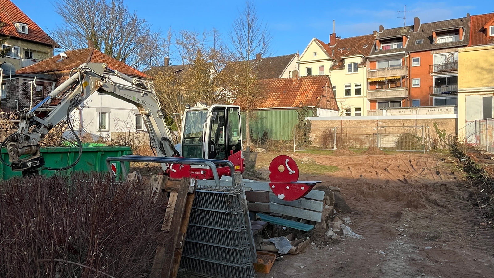Auf dem Gelände ist der Fortschritt bereits sichtbar. Vorhandene Geräte wurden zur Wiederverwendung abgebaut, Sträucher entfernt und alte Zäune beseitigt. Eine lokale Garten- und Landschaftsbaufirma realisiert das Konzept. Rund zwei Monate Bauzeit sind vorgesehen. Mit steigenden Temperaturen und dem Beginn des Frühlings soll die erweiterte Spielfläche von etwa 780 Quadratmetern zur Verfügung stehen.