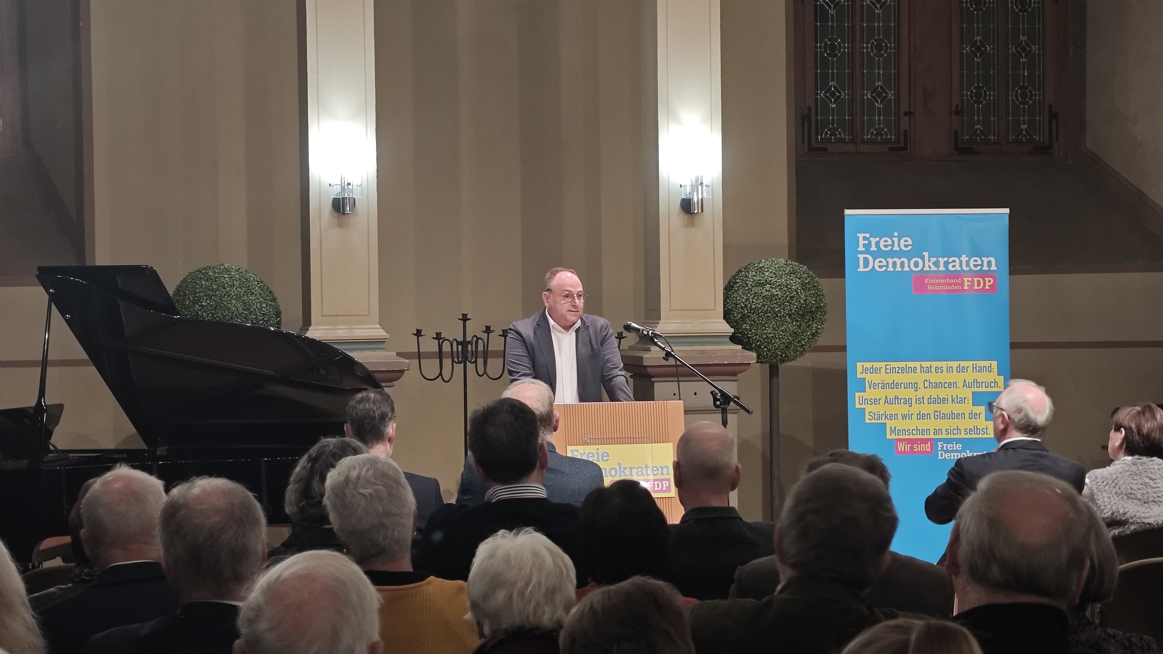 Bevern (zir). In der Schlosskapelle Bevern hat die FDP am 14. Januar ihren Neujahrsempfang veranstaltet. Begleitet von Klaviermusik kamen Vertreter aus Politik und Verwaltung zusammen. Im Mittelpunkt des Abends stand der Bundesvorsitzende der FDP, Christian Dürr, der als Stargast der Veranstaltung zentrale politische Themen ausführlich beleuchtete. Daneben ging es um Bildung, die angespannte Finanzlage der Kommunen sowie die zukünftige Ausrichtung der FDP.