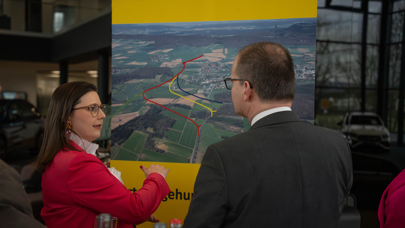 Der Termin begann am Autohaus Beineke in Holzminden. Dort begrüßten Maren Urban, Vorsitzende der B240-Initiative, sowie weitere Mitglieder den Minister. In einem Austausch stellten sie den aktuellen Planungsstand vor. Seit Jahren setzt sich die Initiative für die Umsetzung der sogenannten „Perlenkette“ ein – ein Gesamtkonzept aus Ortsumgehungen und dem Bau des Ith-Tunnel, das die Verkehrssituation nachhaltig verbessern soll.