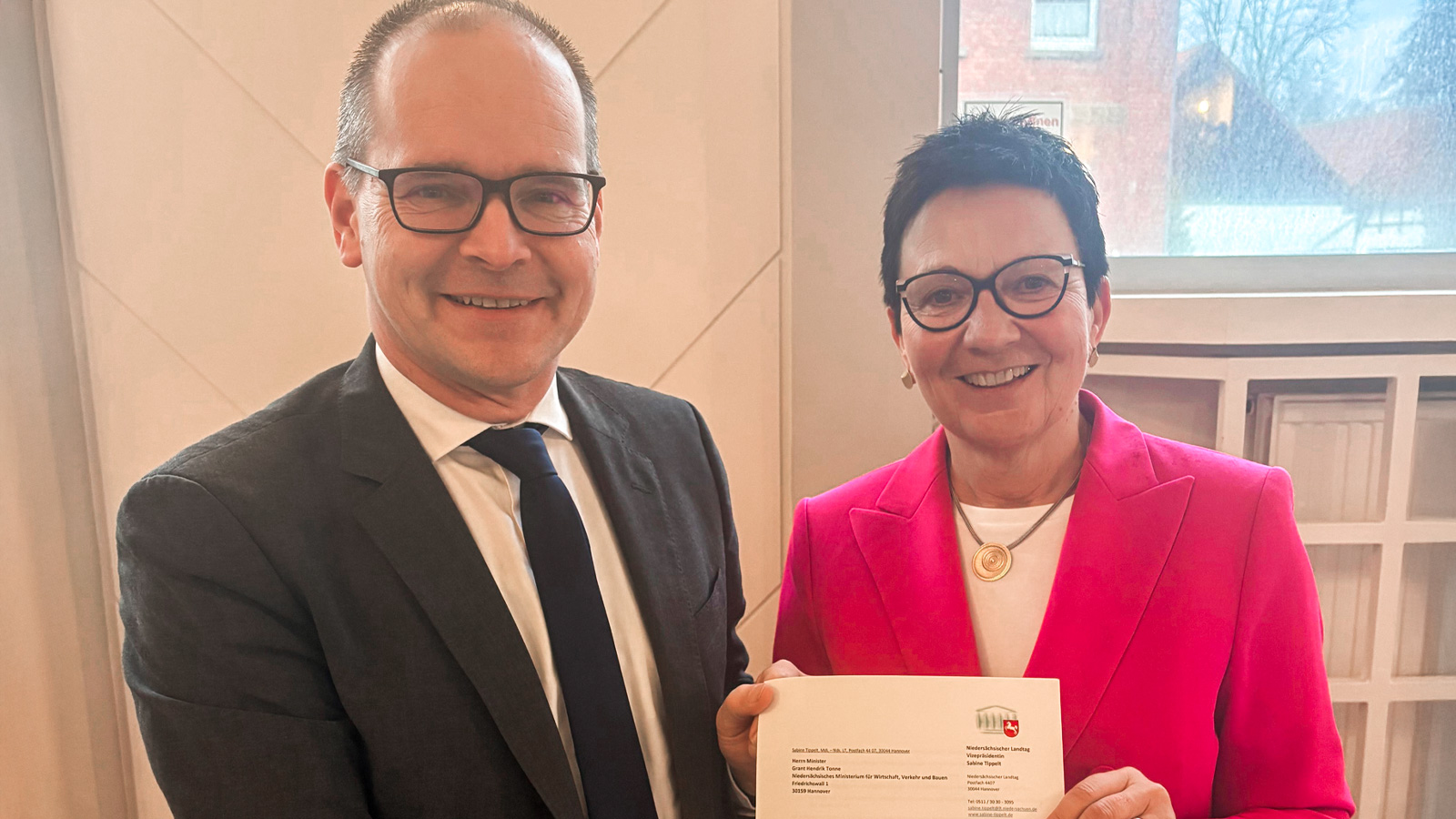 Holzminden/Höxter (red). Am Rande eines Termins mit der B240-Initiative hat die Landtagsabgeordnete Sabine Tippelt (SPD) am 23. Februar 2026 ein Schreiben zum geplanten Neubau der Weserbrücke in Höxter an Niedersachsens Wirtschafts- und Verkehrsminister Grant Hendrik Tonne übergeben.