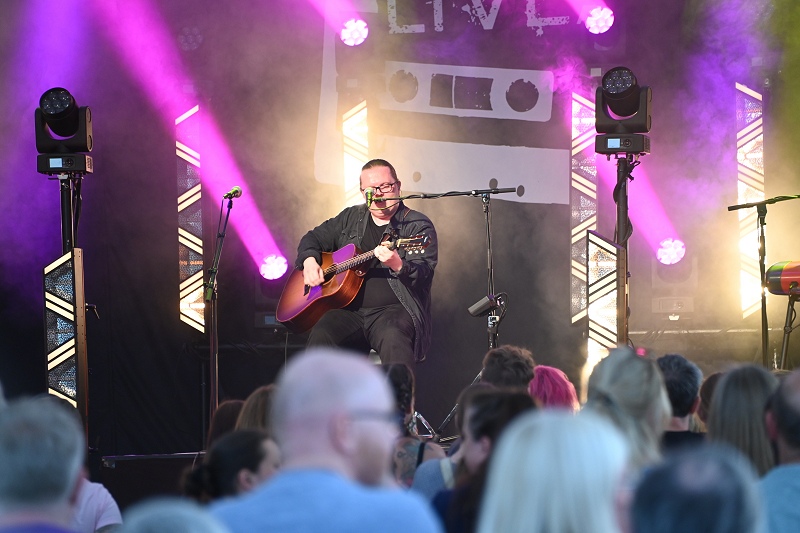 Höxter (TKu). Es war eine große Party: Nach dem Auftakt in Bad Zwischenahn machte Angelo Kelly am vergangenen Samstag Station auf der Landesgartenschau in Höxter mit seinem beliebten „MIXTAPE“. 500 Kelly-Fans und Musikbegeisterte aller Altersstufen waren dazu erschienen. Bei „MIXTAPE“ hat Kelly alle Highlights aus seinen bisher drei MIXTAPE-Touren in einem „Best-of-Programm“ performt, musikalisch begleitet durch seinen guten Freund Matthias Krauss. Im Sonnenuntergang feierten die Besucherinnen und Besucher gemeinsam mit Angelo Kelly und Matthias Krauss zu bekannten Hits und Evergreens in den Abend hinein. Die Stimmung war grandios und das Publikum sang und klatsche oft mit.