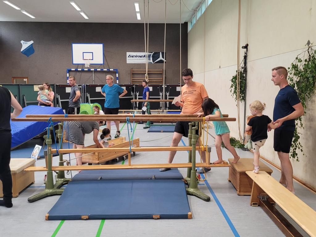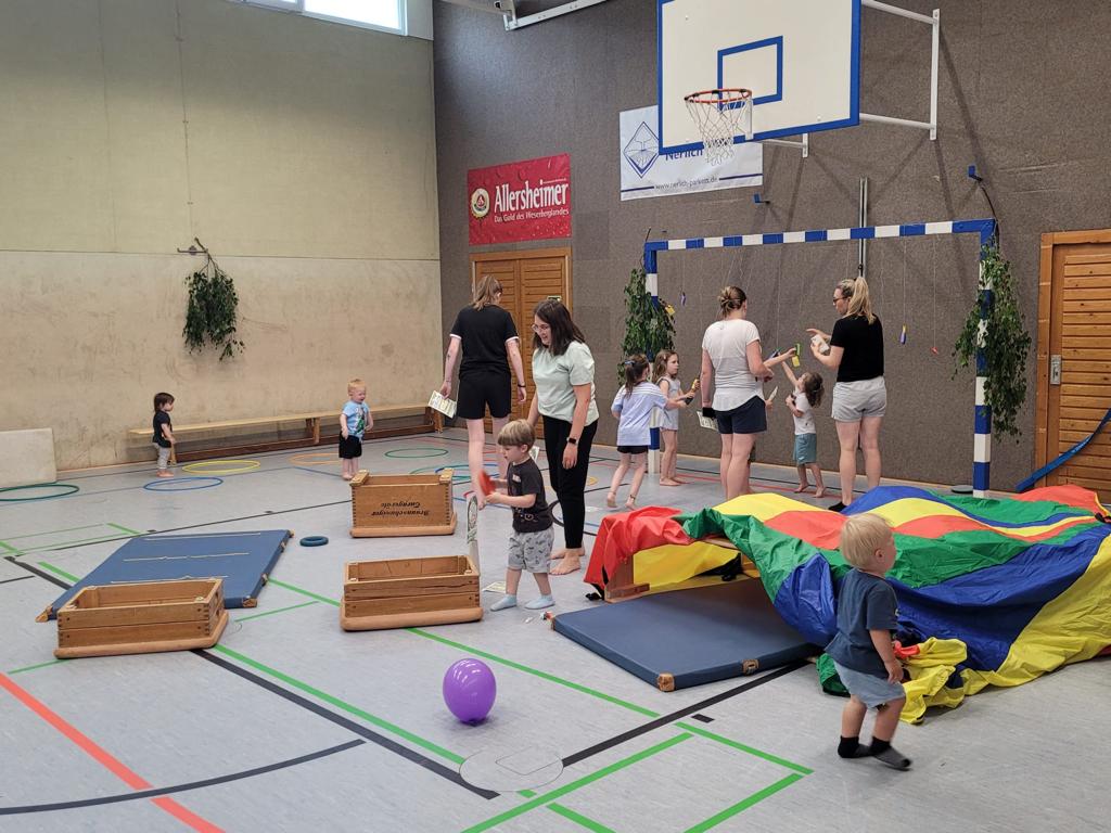 Kirchbrake (red). In der Eltern- und Kind-Turngruppe des TSV Kirchbrak hatte Frau Eule Geburtstag! Der frisch lizenzierte Übungsleiter Maik Weper hatte dafür mit einigen HelferInnen in der Turnhalle einen liebevoll gestalteten Bewegungsparcours unter Patenschaft des Landessportbundes aufgebaut. 18 aufgeregte Kinder waren mit ihren Eltern dabei, den Hasen Hoppel und den Igel Bürste auf dem Weg durch den Wald zur Eule zu begleiten, denn die hatte Geburtstag! Sechs Übungen waren in die Handlung dieser kleinen Bewegungsgeschichte eingebettet. Mit diesen Bewegungsvorschlägen wurden den jungen Sporttreibenden Bewegungsgelegenheiten und -erlebnisse angeboten, die dem natürlichen Bewegungs- und Entdeckungsdrang von Kindern entsprechen.