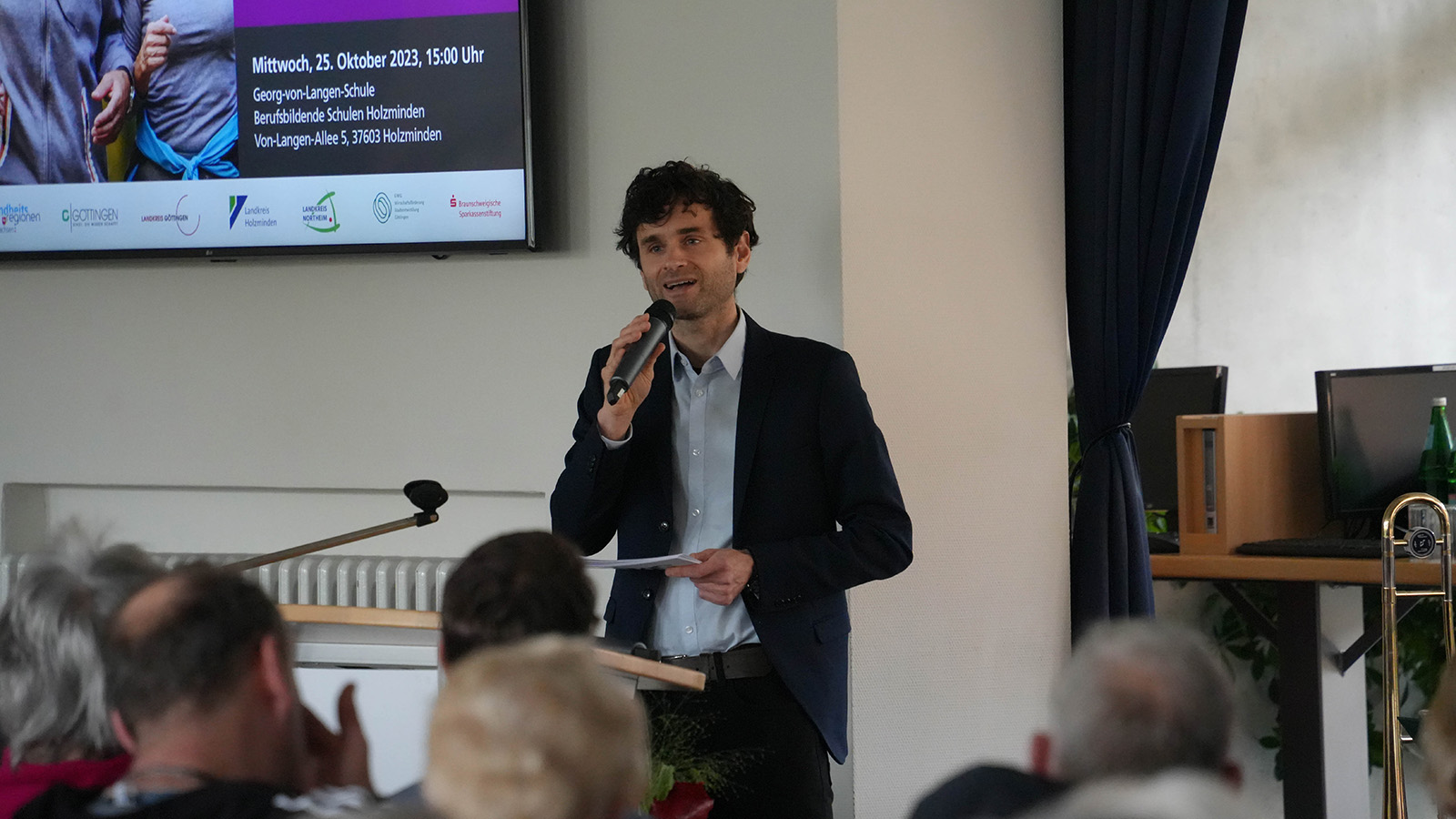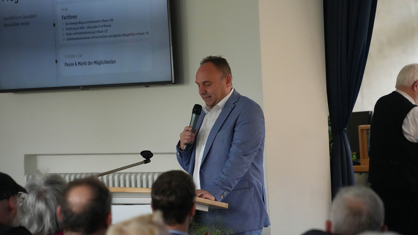 Eingeläutet mit einer musikalischen Darbietung der „Sleepy Town Jazz Band“ moderierte Marius Haack von der Landesvereinigung für Gesundheit die ersten Stunden. „Vielen Dank für die Musik, aber auch an alle, die das hier heute auf die Beine gestellt haben“, bedankt sich Landrat Michael Schünemann in einer anschließenden Rede. „Ich freue mich, dass die Gesundheitskonferenz das erste Mal in Holzminden stattfindet“, fügt Schünemann hinzu. Weiter geht er darauf ein, dass es 2020 einen Anteil von 9,3 Prozent an über 80-Jährigen im Landkreis Holzminden gab und lehnt an dieser Tatsache den Appel: „Nutzen Sie die heutigen drei Stunden und informieren Sie sich so gut Sie können“. Auch Bürgermeister Christian Belke sieht sich mit dem Motto der Veranstaltung konfrontiert. „Zur Gesundheit im Alter zählt sowohl die Körperliche als auch die Geistige. Einsamkeit aber, spielt eine ebenso wichtige Rolle. Die darf es meiner Meinung nach im Alter nicht geben“, führt der Bürgermeister fort. Anschließend sprach auch die Staatssekretärin Dr. Christine Arbogast über das Grundbedürfnis Gesundheit, das sie selbst als ein brennendes und spannendes Thema empfindet. „600.000 Euro vom Land und 490.000 Euro von Kooperationspartnern gehen jährlich in die Gesundheitsregion“, informiert Arbogast die Zuhörerschaft. „Mich machen die Projekte der Gesundheitsregion Südniedersachsen stolz, daher sind die Gelder gut angelegt“, fügt sie hinzu.