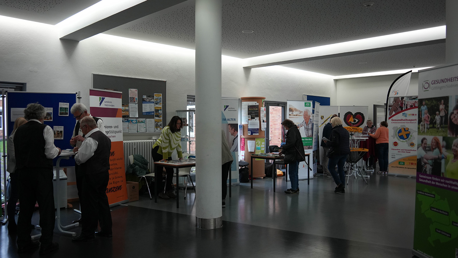 Nach dem Vortrag von Kruse verteilten sich die Zuhörer auf die verschiedenen Fachforen, die die Thematiken „Der bewegte Weg zur Achtsamkeit“, „Ernährung im Alter“, „Kultur und Selbstaktivierung“ und „Selbstbestimmt Wohnen mit technischen und digitalen Alltagshilfen“ näher beleuchteten. Waren die Fachforen nach einer Stunde abgeschlossen, konnte man sich dann anschließend auf einem Informationsmarkt verschiedene Stände anschauen, wo sich unter anderem präsentierten: Solling-Vogler-Region, Senioren- und Pflegestützpunkt sowie Sozialpsychiatrischer Dienst des Landkreises Holzminden, Gesundheitsregion Göttingen, Freie Altenarbeit Göttingen e.V., AOK Niedersachsen, Niedersächsischer Turner-Bund, Kreissportbund Holzminden, Teamwork für Gesundheit und Arbeit Niedersachsen, Deutsche Herzstiftung, Braunschweigische Sparkassenstiftung, Bündnis gegen Depression in Südniedersachsen und MTV Altendorf.