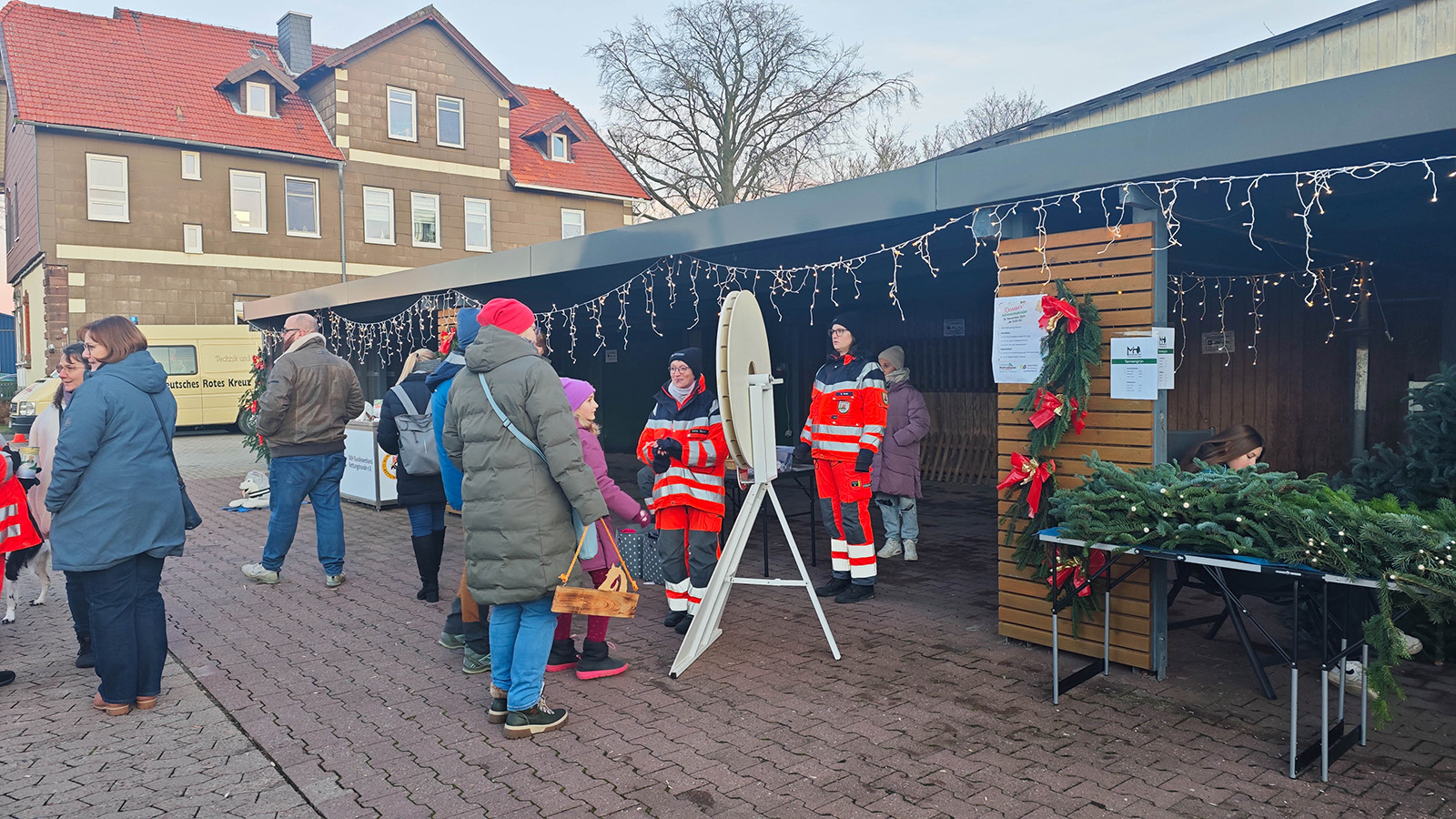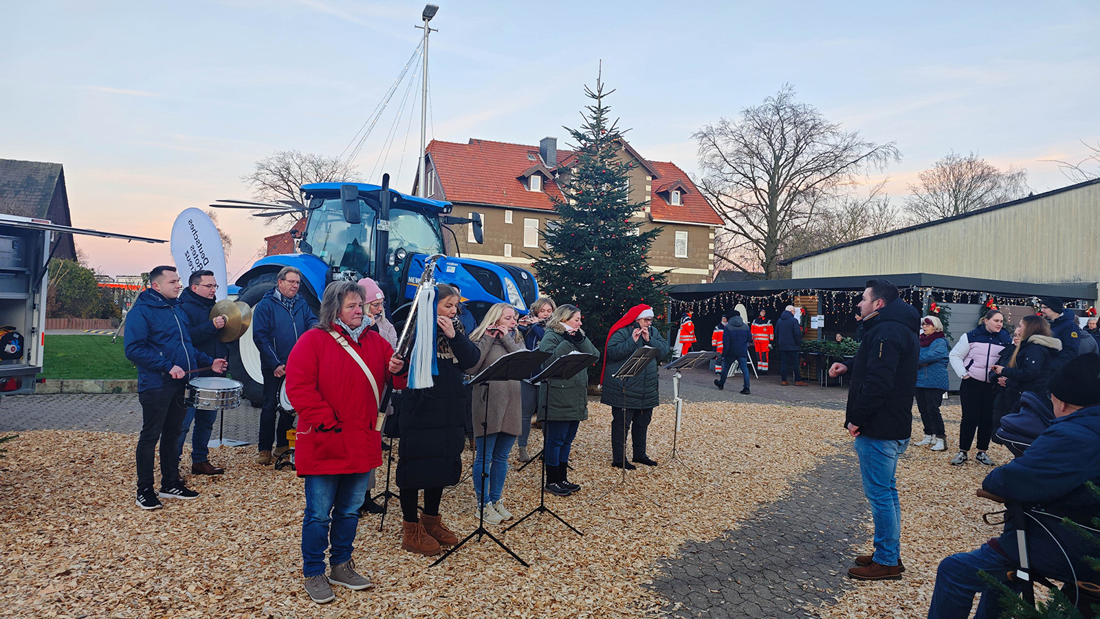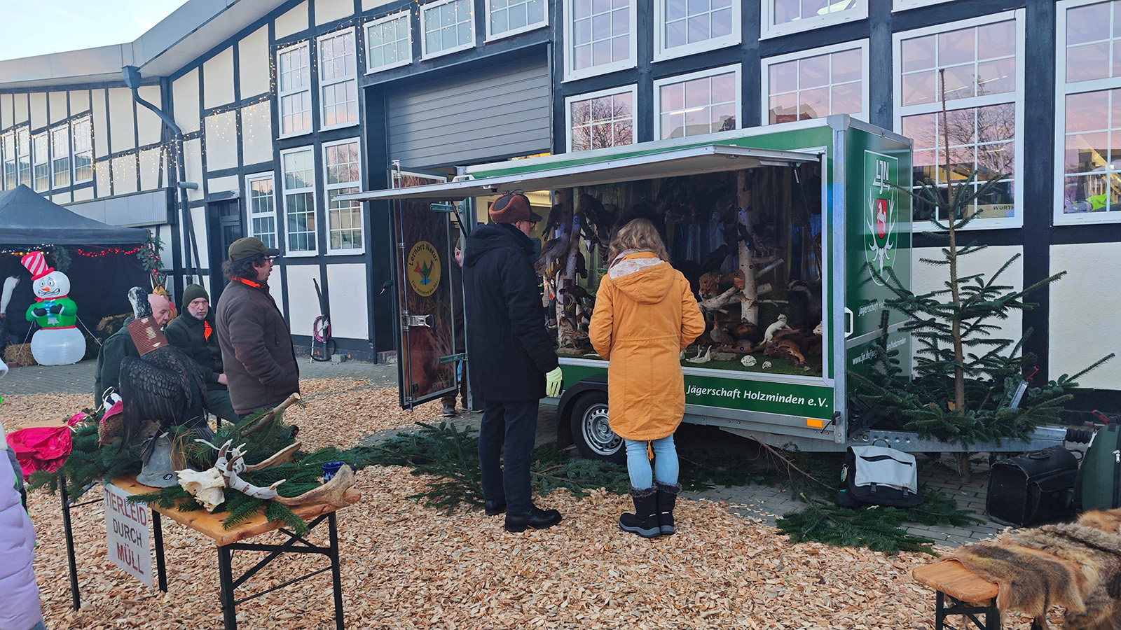 Auf dem Werksvorhof boten Glühweinstände und kulinarische Angebote alles, was das Herz begehrt. Gleichzeitig hatten die Besucherinnen und Besucher die Möglichkeit, sich an den Ständen regionaler Vereine wie dem Deutschen Roten Kreuz, dem Bundesverband Rettungshunde oder der Jägerschaft Holzminden über deren Arbeit zu informieren. Musikalisch untermalt wurde die Veranstaltung vom Spielmannszug der Freiwilligen Feuerwehr Holzminden und den Jagdhornbläsern Deensen, die das weihnachtliche Ambiente perfekt abrundeten.