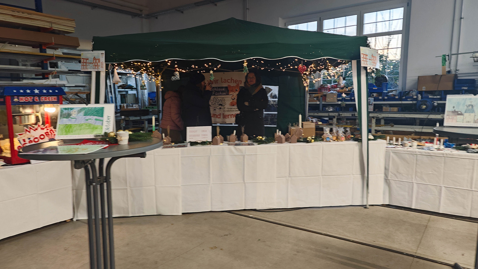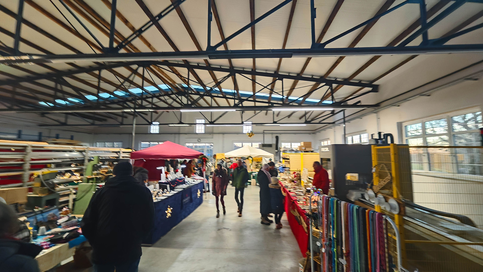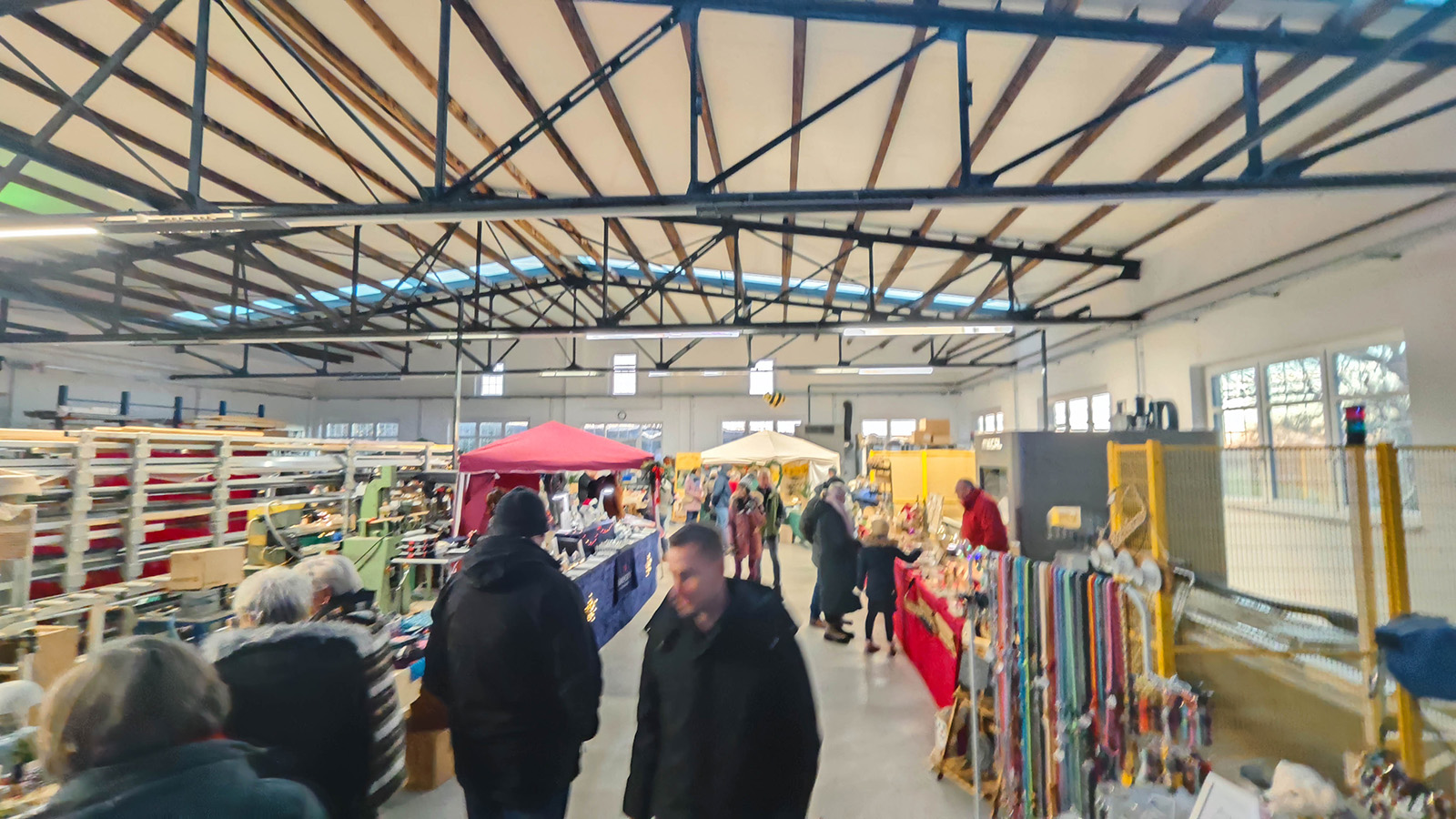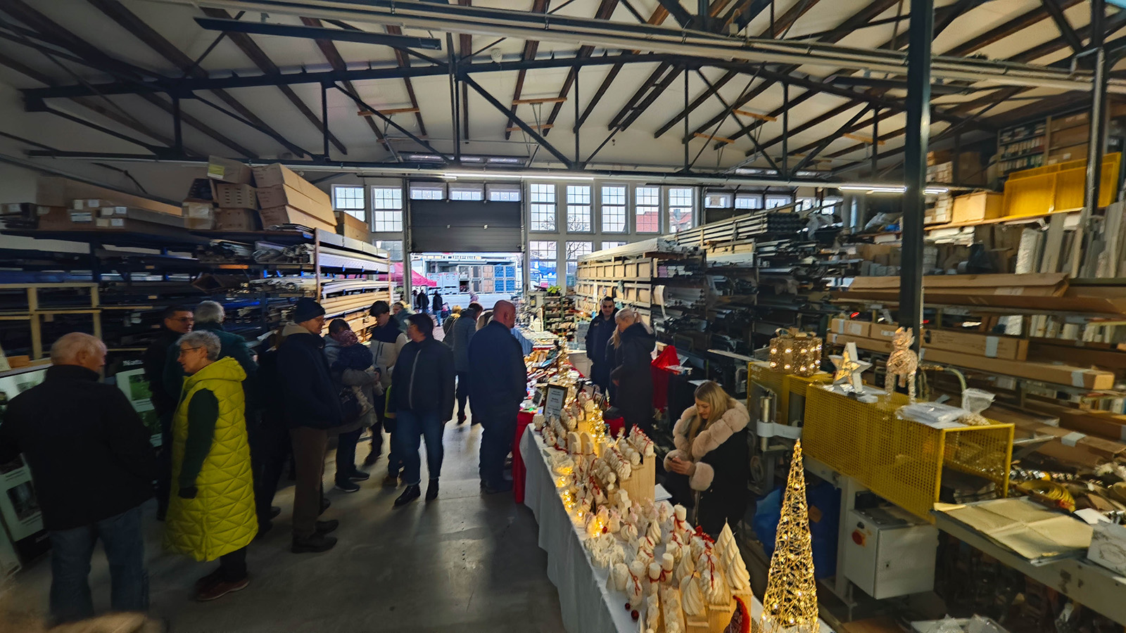 Schon beim Betreten des Geländes kam festliche Stimmung auf: hell leuchtende Girlanden, mit Tannen und Schleifen geschmückte Zäune, der Duft von Glühwein und anderen Köstlichkeiten sowie der ausgelegte Rindenmulch sorgten für eine authentische Weihnachtsatmosphäre. In der Halle der Holzhandlung erwartete die Gäste ein bunter Weihnachtsmarkt mit einer Vielfalt an handgefertigten Dekorationen, Holzarbeiten, Schmuck und regionalen Produkten – ideal, um das ein oder andere Weihnachtsgeschenk zu entdecken.