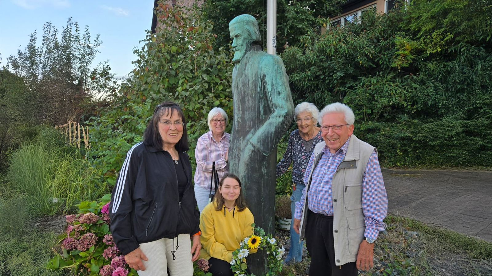 Eschershausen (red). Am 8. September jährte sich der Geburtstag von Wilhelm Raabe, Schriftsteller und Ehrenbürger der Stadt Eschershausen, zum 194. Mal. Aus diesem Anlass legte die Laienspielgruppe „Raabe-Bühne“ einen Blumenkranz am Raabe-Denkmal nieder. Mit der schlichten Geste wurde an das literarische Schaffen und die enge Verbindung des Dichters zu seiner Heimatstadt erinnert.
