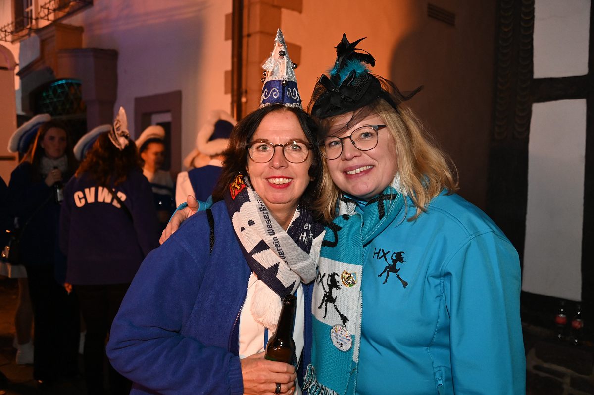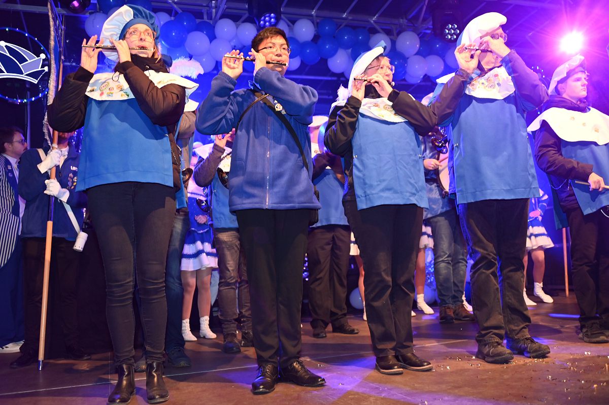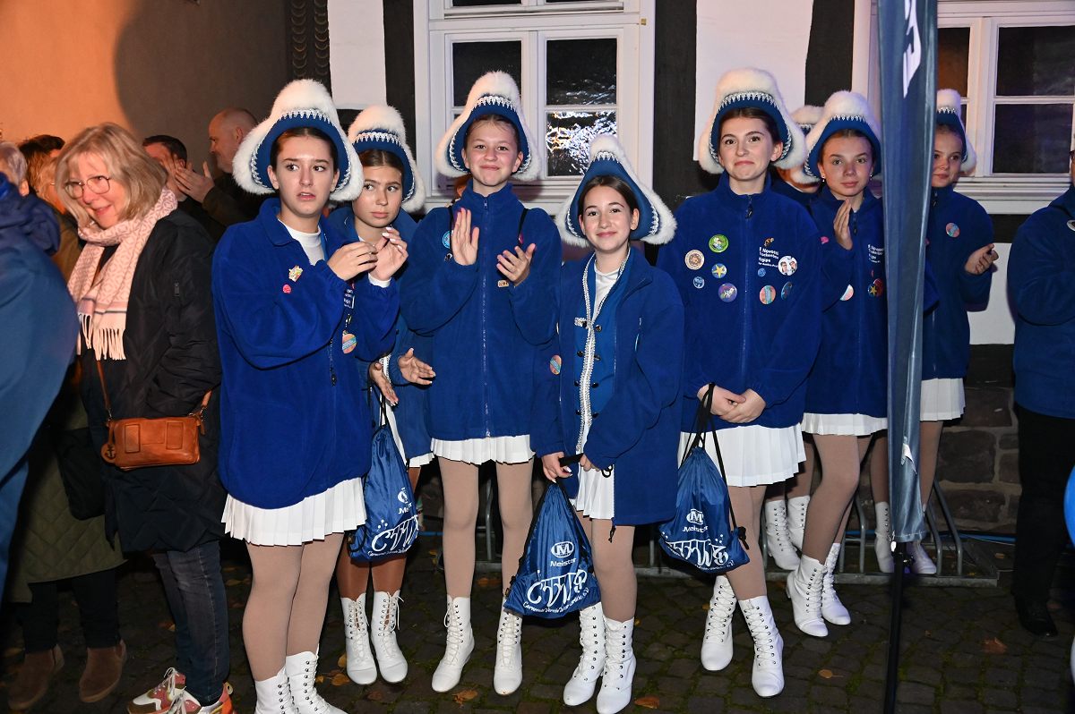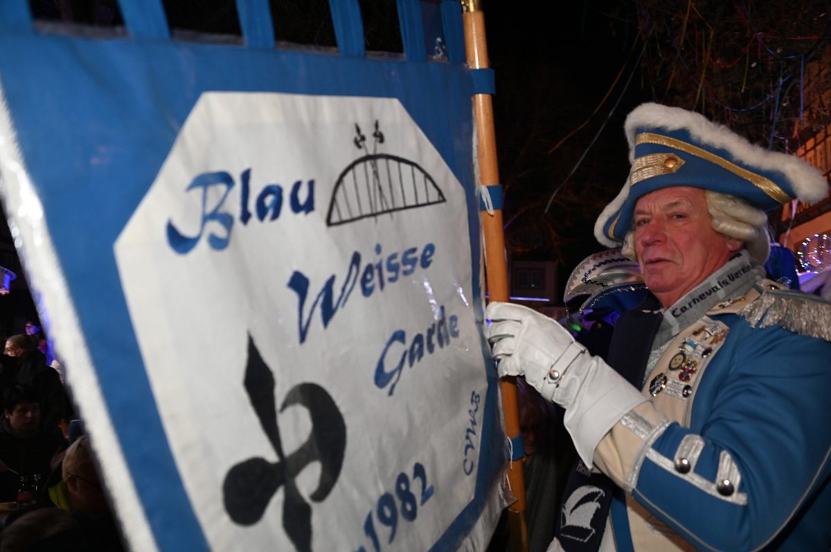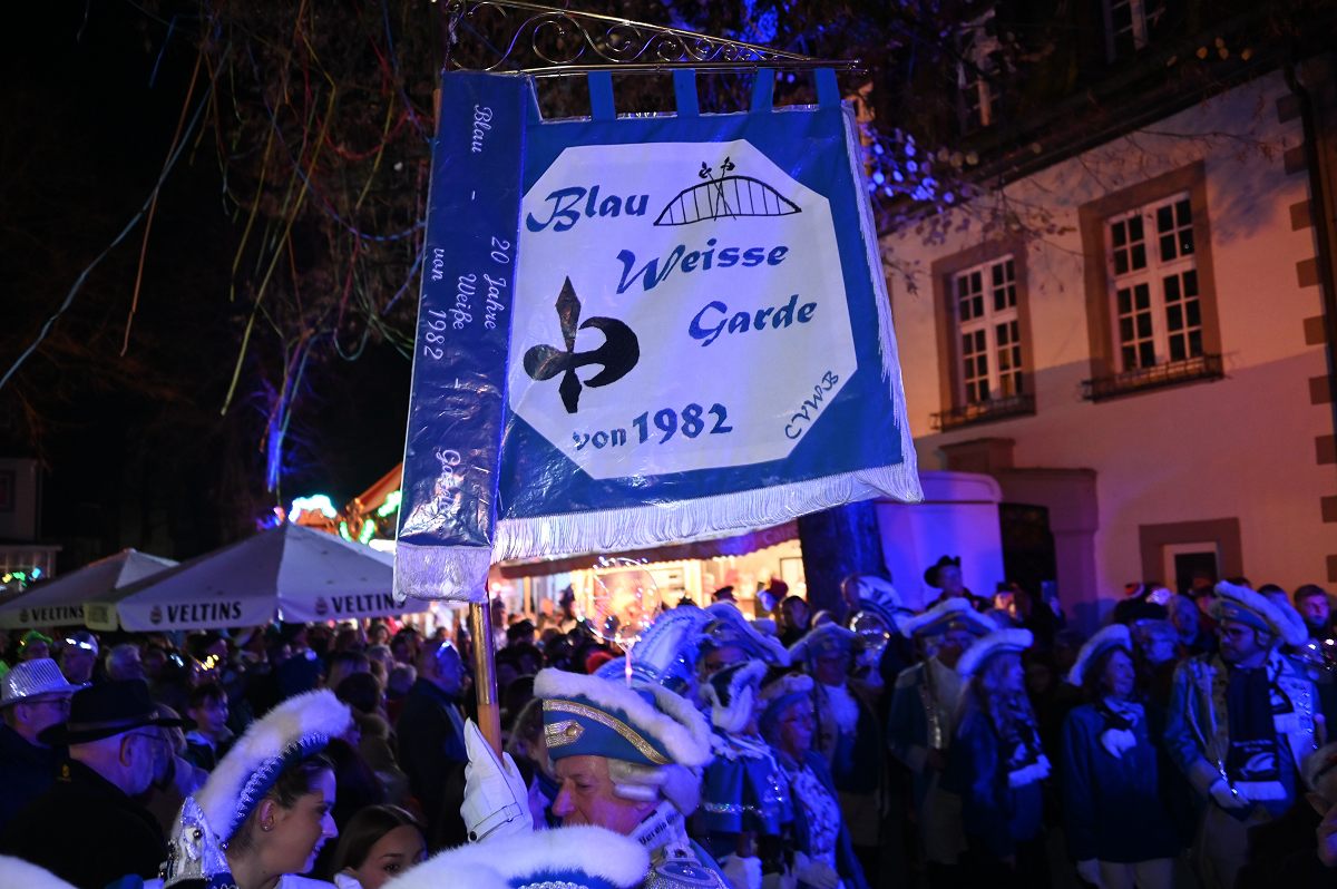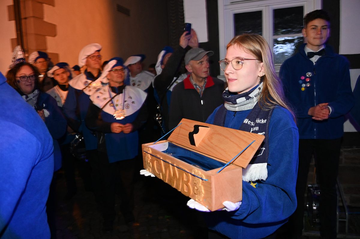 Die Jecken aus Beverungen und Lauenförde ließen es sich zunächst nicht nehmen, traditionsgemäß den Schlüssel zum Roten Rathaus in Lauenförde zu erobern und das Rathaus zu erstürmen. Die Wächter des Schützenvereins Lauenförde von 1882 e.V. rückten mit einer schweren Kanone, einer kleinen Schützenarmee und einem massiven Schlagbaum an, um das Gebäude gegen die närrische Übermacht zu verteidigen. Auch zwei Burgwächter aus Beverungen, motiviert durch den neu gewählten Bürgermeister Tino Wenkel, stellten sich den Karnevalisten entgegen. Doch trotz ihrer lautstarken Verteidigungsstrategie blieb der Sieg der Jecken unausweichlich: Die Damen der blau-weißen Garde eröffneten den Angriff mit Konfetti-Kanonen, gefolgt von der Alten Garde, die mit Regenschirmen ein ungewohntes, aber wirkungsvolles Bild bot. Schließlich ebneten die männlichen Karnevalisten den Weg, indem sie den Schlagbaum kurzerhand beiseiteräumten und so die Verteidigungslinie durchbrachen. Unter großem Jubel zog die Narrenschar ins Rathaus ein. CVWB-Präsident Daniel Zarnitz zeigte sich begeistert über den gelungenen Auftakt der Jubiläumssession.