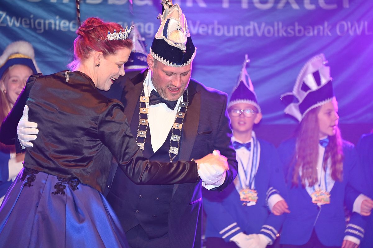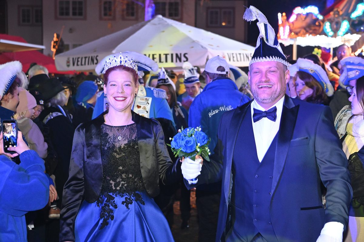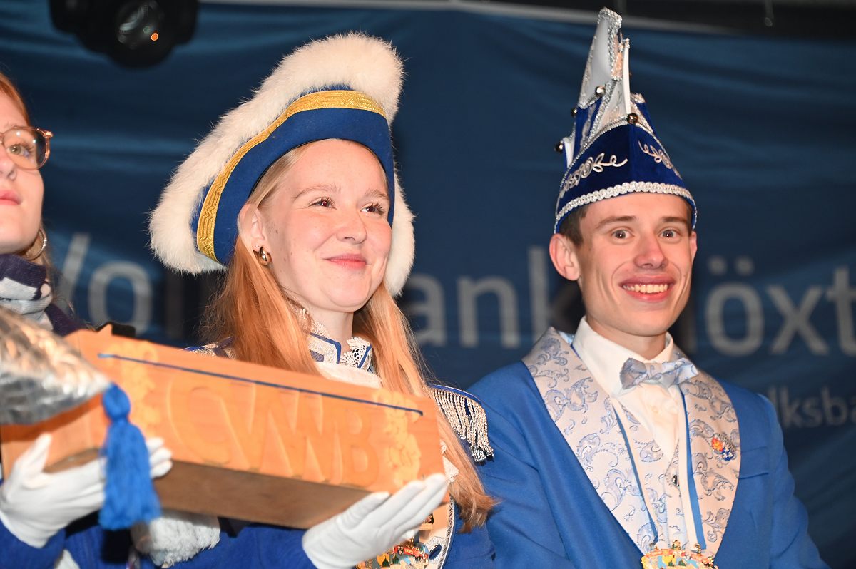Nach dem Rathaussturm war das närrische Treiben noch lange nicht vorbei. Am Nachmittag startete in Beverungen das bunte Programm auf dem Kellerplatz – begleitet von Musik, Tanzdarbietungen der Garden und vielen Aktionen für Groß und Klein. Höhepunkt des Tages war die Proklamation der neuen Tollitäten um 17.11 Uhr: Prinz Florian, „der balearisch Regierende“ (Kastens), und Prinzessin Carena, „die ewig Marschierende“ (Zarnitz), übernehmen das närrische Zepter der Jubiläumssession. An ihrer Seite führen „Till, der fröhlich Kreative“ (Marx) und Prinzessin „Johanna, die glitzernd Aktive“ (Kleinschmidt) die jungen Karnevalistinnen und Karnevalisten an. Mit großem Applaus wurden zugleich die scheidenden Tollitäten verabschiedet, die sich mit einer Ehrenordenverleihung aus ihren Ämtern verabschiedeten. Auch das WDR-Fernsehen war vor Ort und berichtete aus der Karnevalshochburg im Dreiländereck.